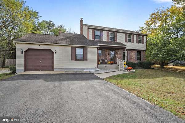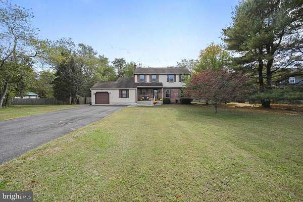Lovely, appointed Colonial-style brick residence that boasts four spacious bedrooms and three and a half well-designed bathrooms is new to the market. The owners just installed a brand-new septic system in 12/25! The property is nestled on an expansive 1.7-acre parcel along a serene rural street. This property offers a remarkable blend of peace and privacy, complemented by protected green space across the way. Upon entering this charming home, one is immediately enveloped by the warm and inviting atmosphere of the expansive living room, adorned with rich hardwood flooring that catches the light beautifully. The neutral tones of the freshly painted walls create a versatile canvas, inviting you to infuse your personal style throughout. The dining room, enhanced by a striking modern chandelier, beckons families and friends to gather for joyful meals and celebrations. Transitioning seamlessly into the generous family room, one finds a cozy brick fireplace (with wood stove insert) that heats the interior and serves as a focal point. Sliding glass doors from the family room provide easy access to a delightful wood deck-an ideal setting for outdoor entertaining and alfresco dining. The kitchen features white cabinetry that beautifully contrasts with the sleek stainless-steel appliances. The gas stove promises efficiency and precision for your cooking endeavors, and the granite countertops provide both functionality and visual appeal. A pantry offers ample storage for ingredients and essentials, and decorative lighting adds an elegant touch to this inviting space. The first-floor bedroom is thoughtfully appointed, complete with a new private bathroom featuring a luxurious walk-in shower, highlighted by tasteful tile work, a stylish glass door, a chic vanity, new lighting, and elegant flooring-perfect for an in-law suite or accommodating guests or family members who appreciate convenience. The main level also incorporates a spacious laundry and utility room, along with a conveniently located powder room for guests. New carpeting ushers you upstairs, where a sense of coziness permeates the upper level. New carpeting can also be found throughout the second level. The primary suite features a generous walk-in closet and a tranquil sitting area, which is perfect for relaxation. The en-suite bathroom reveals a newer walk-in shower adorned with beautiful tile. Two additional spacious bedrooms offer ample closet space and are complemented by a full bathroom featuring new fixtures, stylish flooring, and an elegant vanity. With a brand-new HVAC system and water heater, this home ensures year-round comfort and efficiency. Located just minutes from vibrant shopping centers and with convenient access to Route 73, this delightful home lies within the highly regarded Marlton school district. This splendid opportunity to own a remarkable sprawling property should not be overlooked.