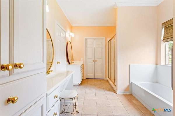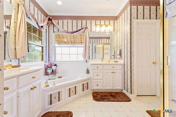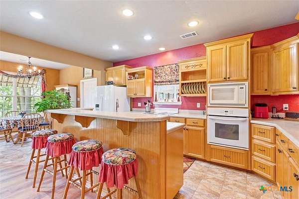 - Breakfast Area, Breakfast Bar, Ceiling Fans, Dining Area, Double Vanity, Entrance Foyer, Garden Tub Roman Tub, Home Office, Kitchen Dining Combo, Kitchen Family Room Combo, Main Level Primary, Multiple Dining Areas, Pantry, Primary Downstairs, Pull Down Attic Stairs, Separate Formal Dining Room, Separate Shower, Walk In Closets, Walk In Pantry