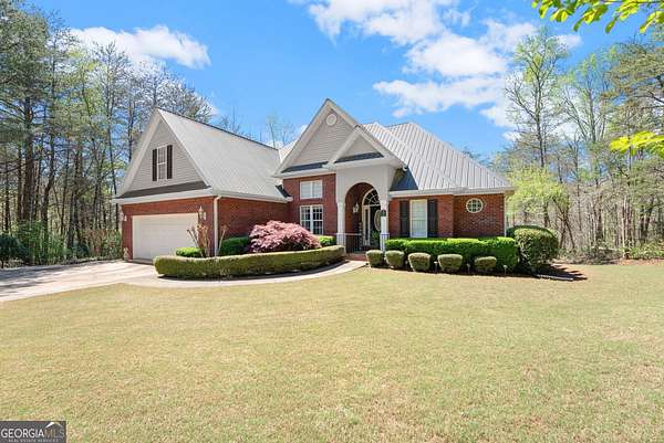 Tucked away on 11 private wooded acres with a spring-fed creek, this stunning 4-sided brick ranch offers the perfect blend of peaceful country living and everyday convenience just minutes from Dahlonega, Gainesville, and Dawsonville. Featuring 6 bedrooms and 3 full baths, this custom-built home showcases high ceilings, beautiful windows, marble tile, and timeless design throughout. The fully finished basement lives like a second home with its own kitchen, den, laundry, and bath-ideal for guests or multi-generational living. Enjoy the outdoors from the screened porch overlooking mature landscaping, or take advantage of the wrap-around paved drive and multiple garage spaces, including an oversized attached garage and a 30x28 detached barn garage with power and full bath-perfect for hobbies, storage, or car enthusiasts. With open space and privacy ideal for a mini farm-bring your horses, cows, or other animals, this property offers a rare opportunity to live the North Georgia lifestyle to the fullest.