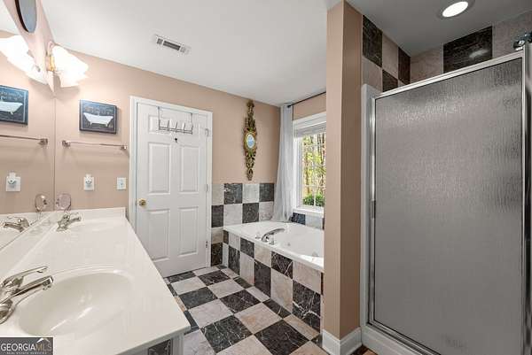 - Double Vanity, In-Law Floorplan, Master On Main Level, Roommate Plan, Separate Shower, Soaking Tub, Split Bedroom Plan