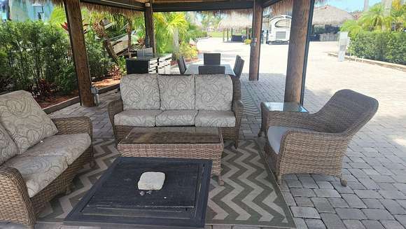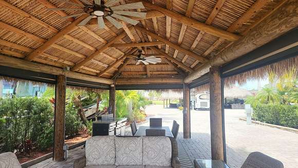 Est $2,856/moLot was just power washed - waiting for you! Motorcoach Resort St Lucie West - a Class A only resort, Golf course and water fall views! Large tiki with electronic shades. This is a pull in lot to soak up the view! Pavers add to the enhancement, Modular kitchen unit in place or add your own custom kitchen! Furnishings included. Resort amenities in this gated community include - pools, hot tubs, tennis, pickleball, gyn, clubhouse, dog parks, and 3 par 18 hole golf to name a few! Near shops, restaurants, highways and the NY Mets training facility.