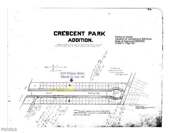 Crescent Park ADD BLK D PB 4 LT 16 + VAC R/W + ADJ CANAL
