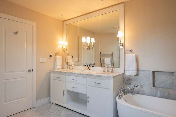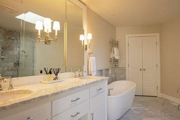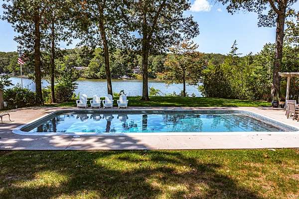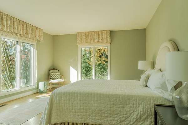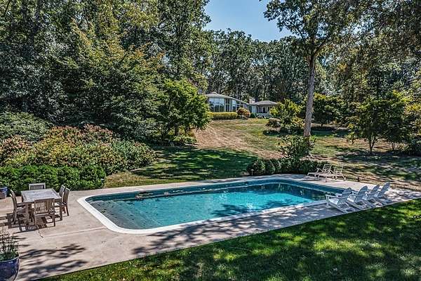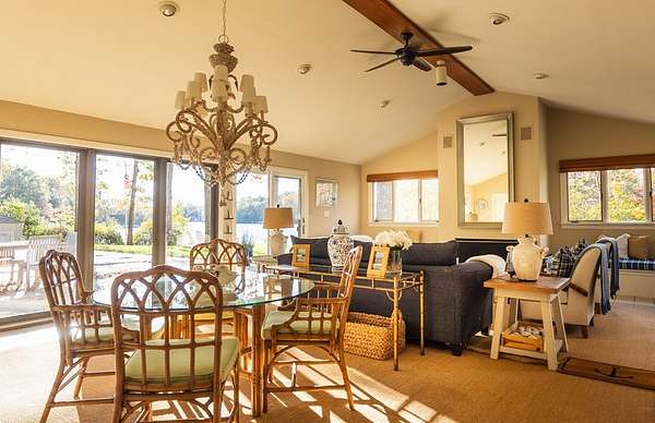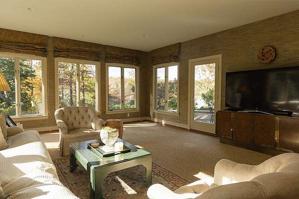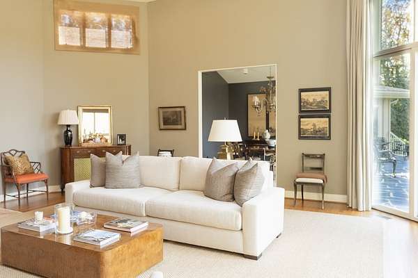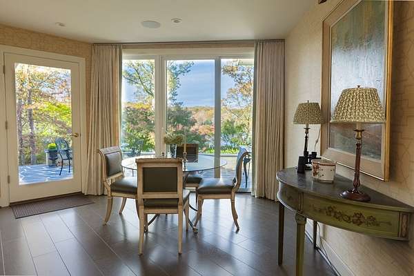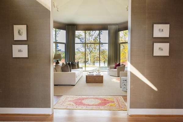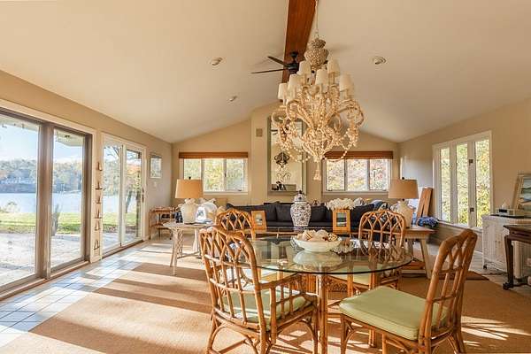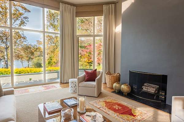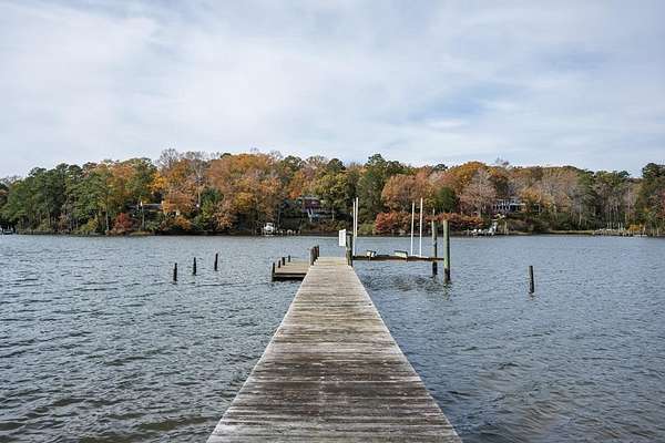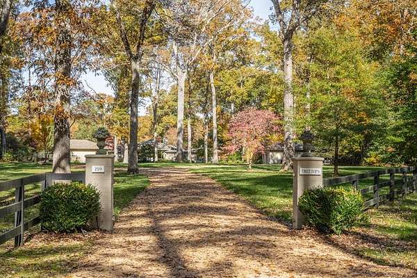 Treetops is an exceptional waterfront estate on the Corrotoman River, masterfully designed by architect Milton L. Grigg in the spirit of "Jeffersonian modernism." The home's symmetry, soaring ceilings, and walls of glass create a seamless connection to the river and surrounding natural beauty. A tree-lined approach leads to the private six-acre property, where manicured lawns, mature landscaping, and panoramic water and sunset views define a serene retreat. Inside, elegant gathering spaces include a formal living room with a fireplace, a dining room overlooking the river, and a light-filled morning room opening to the kitchen and family room. The primary suite offers sweeping river and sunset vistas, dual closets, and a luxurious marble bath. A guest suite with private bath, two additional bedrooms, and a shared hall bath ensures comfort for family and guests. The grounds feature a riverside pool terrace positioned for dramatic evening skies, a guest house with a kitchenette, and a dock with a boat lift--ideal for boating, fishing, and sunset cruises. Matching two-bay garages echo the home's architectural rhythm. A two-acre building site adds potential for expansion or additional accommodations. Blending classic design with timeless craftsmanship, Treetops offers tranquility, privacy, and breathtaking sunsets in one of Virginia's most coveted riverfront settings near Irvington, Kilmarnock, and White Stone.