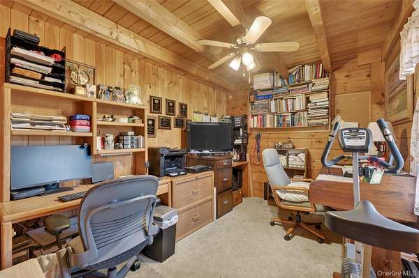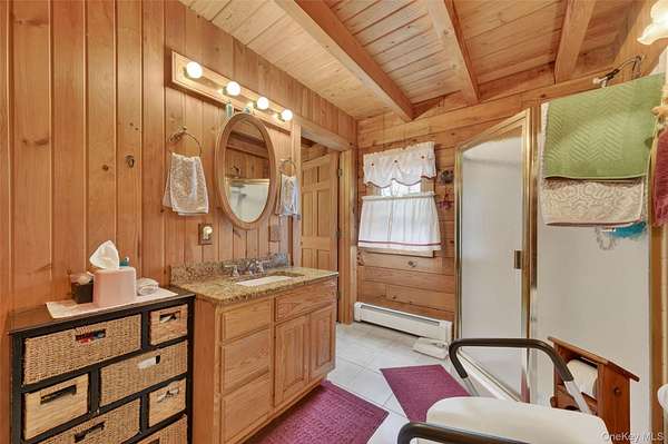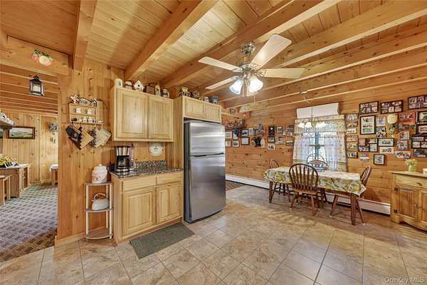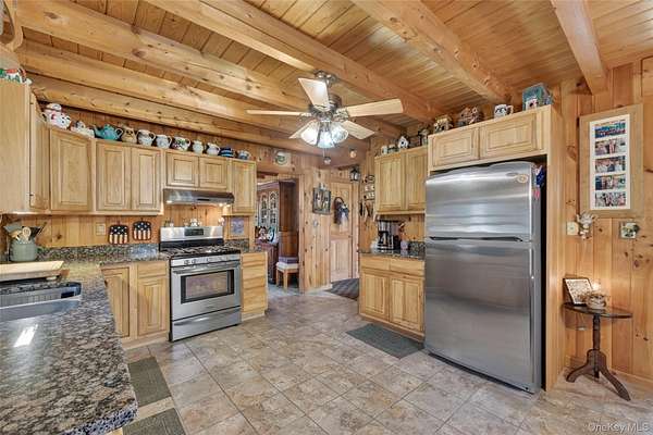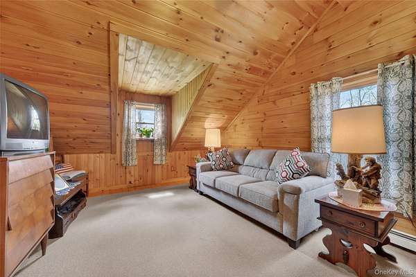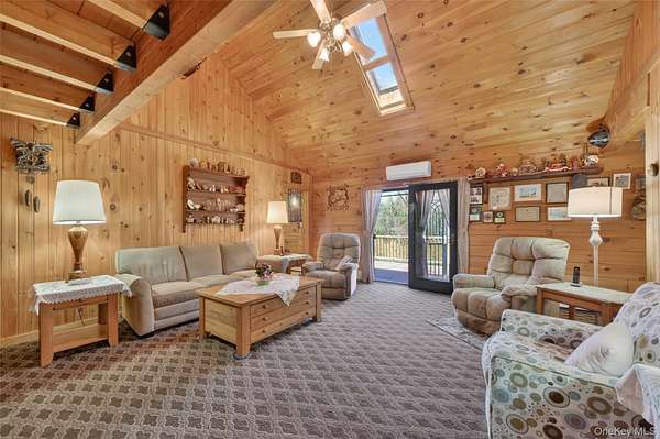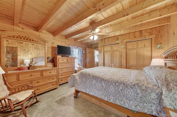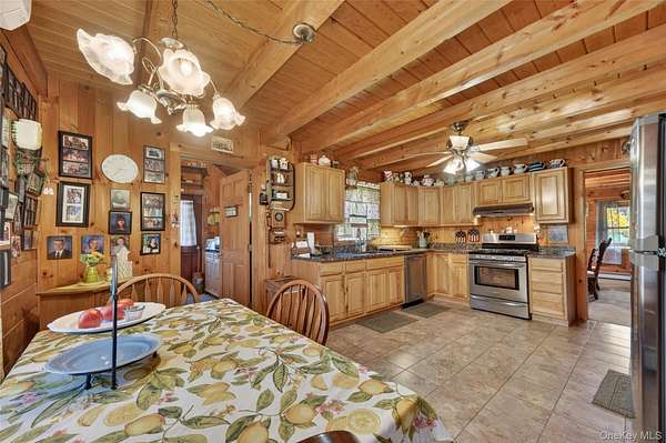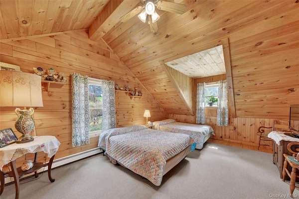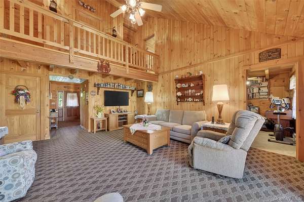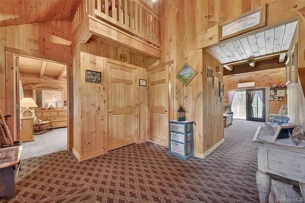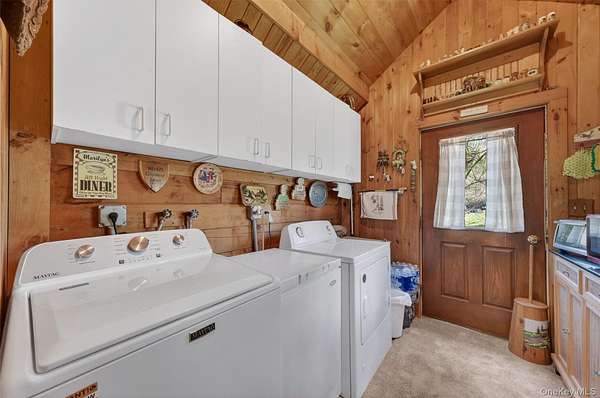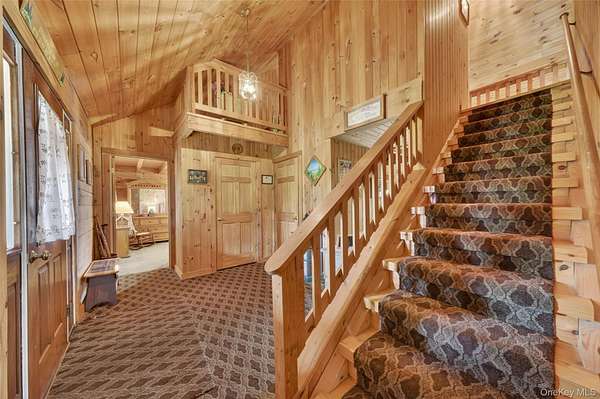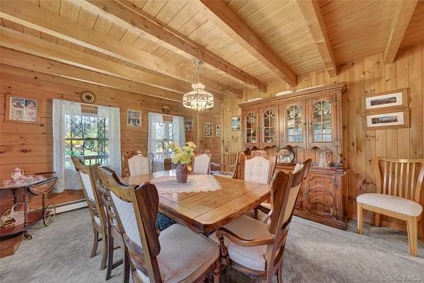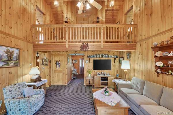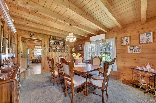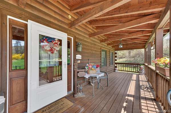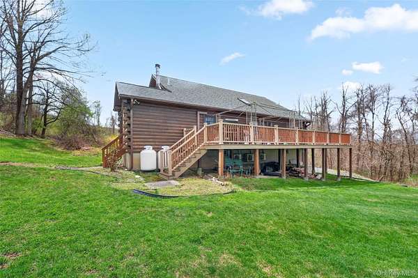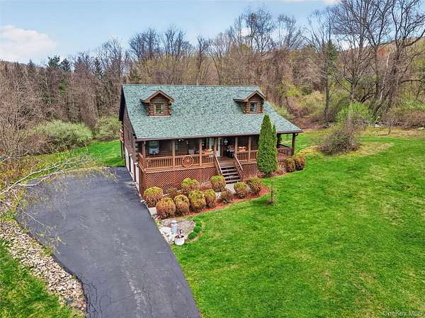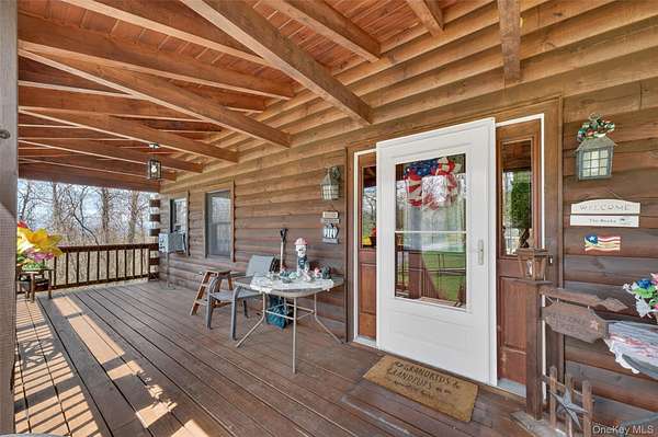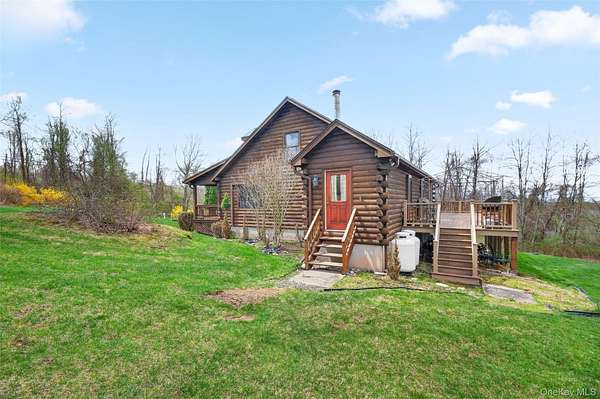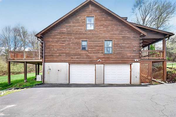 If you're looking for something special, come take a look at this beautiful log home-truly a place to call home. Set on 1.88 acres of lovingly maintained, property that offers both charm and space. Inside, you'll find a first-floor primary bedroom with a full primary bath, along with a living room, dining room, eat-in kitchen, a nice size office , first floor laundry plus a half bath. Upstairs features two generously sized bedrooms with large closets offering plenty of storage, as well as an additional full bathroom. The full, unfinished basement-with both interior and garage access-offers abundant space for storage and endless potential. This home has been lovingly cared for and features mini split-units on the main floor for added comfort. A generator system provides peace of mind for worry-free living. Updates include, stainless-steel appliances, granite counter tops, newer washer/dryer Come relax on the front porch and take in the peaceful country air but still be close to major roadways for easy access to the Taconic state parkway and I-84 and minutes the golf course