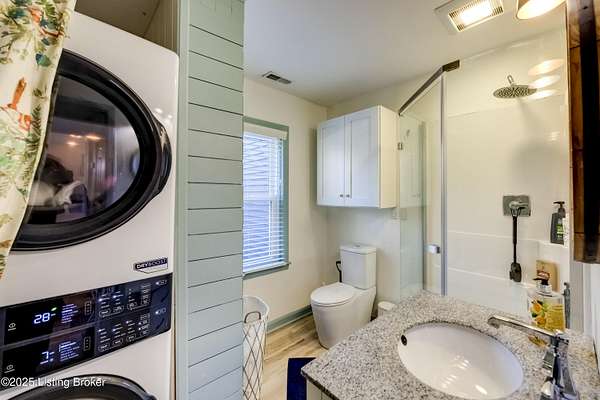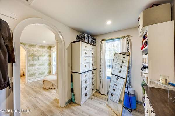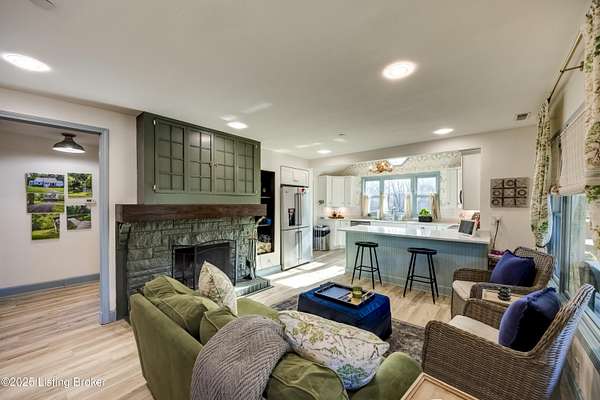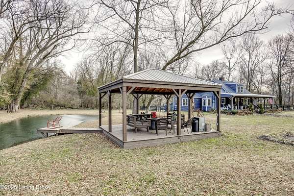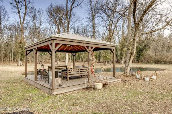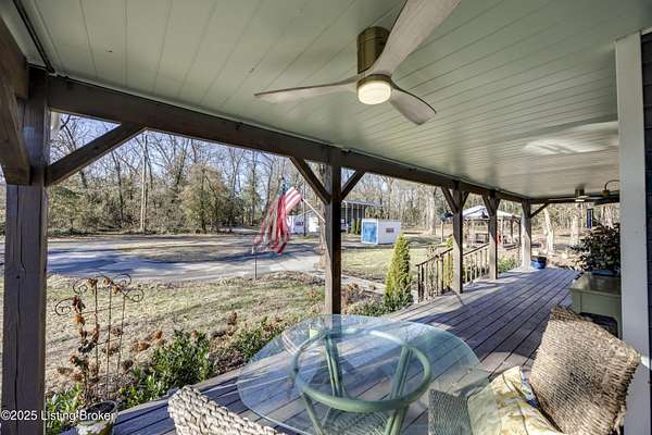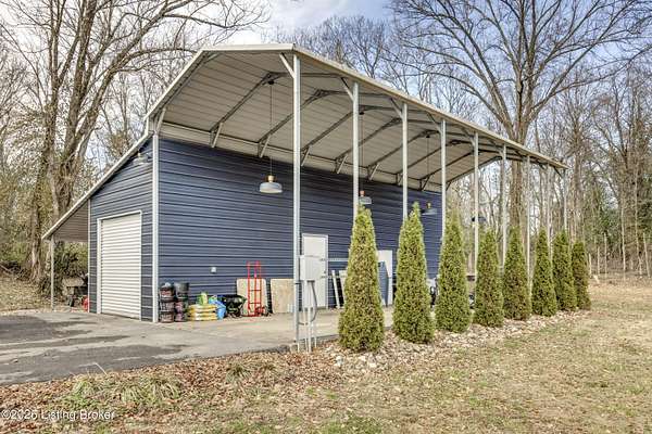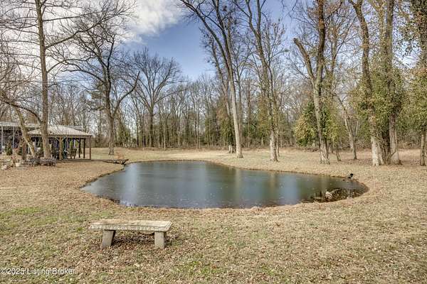 219 Wood Road is more than a home-it is a thoughtfully curated lifestyle property where design, nature, and comfort meet. Set on a private, beautifully landscaped lot with a stocked pond, this extensively renovated residence reflects years of intentional improvements and professional-level finishes throughout. No detail has been overlooked. A substantial 800 sq ft addition expanded the home to include a spacious mudroom and pantry, an enlarged primary suite with walk-in closet, a second-floor dormer office, and additional sleeping spaces including a custom bunk room. The home features luxury vinyl tile flooring throughout, new siding, insulation, electrical upgrades, plumbing upgrades, and a new roof offering both aesthetic appeal and peace of mind. The professionally remodeled primary bath includes dual vanities, a soaking tub, and a custom shower. Secondary bath has been fully updated as well. Multiple porch and deck spaces including a covered front porch, private exits from the primary suite and mudroom, and a stunning 22-foot pergola with roof and deck extending toward the pond create seamless indoor-outdoor living. The pond is stocked and designed for enjoyment, reflection, and recreation. The land has been professionally graded, drained, and landscaped to enhance usability while managing water flow effectively. A large detached garage originally designed to accommodate an RV offers exceptional storage and utility space, with updated electrical and lighting. Additional highlights include a new driveway, custom walkway, crown molding, built-in storage solutions, fingerprint and digital coded door locks, upgraded HVAC systems, tankless water heater and thoughtful insulation enhancements throughout the home. Located just minutes from shopping, dining, expressways, and approximately 20-25 minutes from Louisville International Airport, this property offers rare privacy without sacrificing convenience. A truly special opportunity for buyers seeking character, craftsmanship, and a setting that feels both peaceful and connected. There are two lots included in this listing 300 & 301 Myrtle Ave. all three parcels make up the nearly 2 acres.