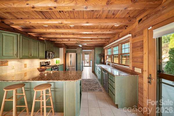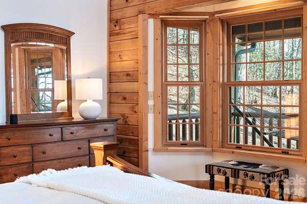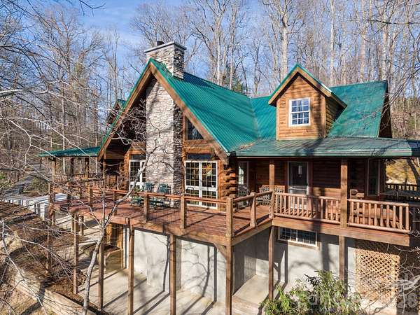This is more than a mountain home-it's where weekends slow down, memories are made, and everyone wants to gather. Welcome to 219 Woodlyn Etch Drive, an inviting log cabin set on 1.5 private acres with year-round mountain views. Inside, a soaring two-story living room anchored by a stunning floor-to-ceiling stone fireplace creates the ultimate space for connection-whether it's cozy nights by the fire or lively evenings with friends and family. Step outside to the wraparound deck and take in the views in every season-morning coffee, sunset dinners, and evenings spent unwinding in the hot tub under the stars. With space to host, room to relax, and the privacy you crave, this home is perfectly suited as a personal mountain retreat or a sought-after short-term rental. A place to unplug, recharge, and return to-again and again.