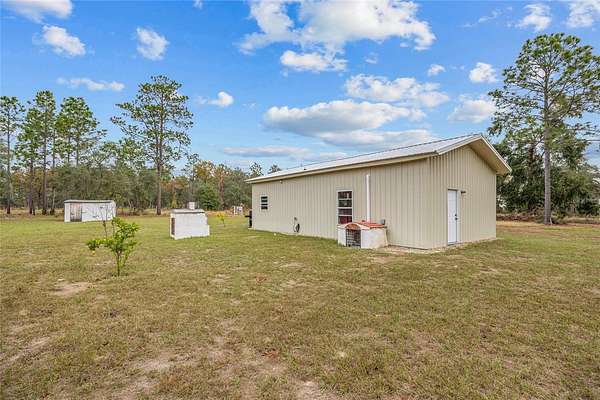 Welcome to your slice of paradise in Williston, Florida! Nestled on a sprawling 10-acre parcel, this barndominium style home built in 2023 offers a unique blend of rustic charm and modern comfort while still providing the conveniences of everyday living. Perfectly situated with easy access to both the World Equestrian Center in Ocala and the University of Florida in Gainesville, this location feels peaceful and private yet far from remote. Daily life is made effortless with private trash pickup, all major deliveries brought right to your door, high speed internet readily available, and a new 7,000 watt back-up generator providing peace of mind. Inside, the barndominium features a versatile, sun-filled living area with an open floor plan that seamlessly integrates the kitchen, dining, living, and sleeping spaces. High ceilings and stylish finishes elevate the ambiance, creating an inviting atmosphere for residents and guests alike. With its flexible design, this home is perfect as a guest house once your dream residence is built on the property, or it can serve beautifully as the primary home. Outdoors, the expansive grounds offer limitless potential, whether you dream of horseback riding, gardening, or simply savoring the serene natural beauty around you. Picture evenings gathered around a fire pit beneath the stars, creating memories that will last a lifetime. Don't miss this opportunity to own a piece of Florida paradise with unmatched convenience and endless potential. Schedule your private tour today!