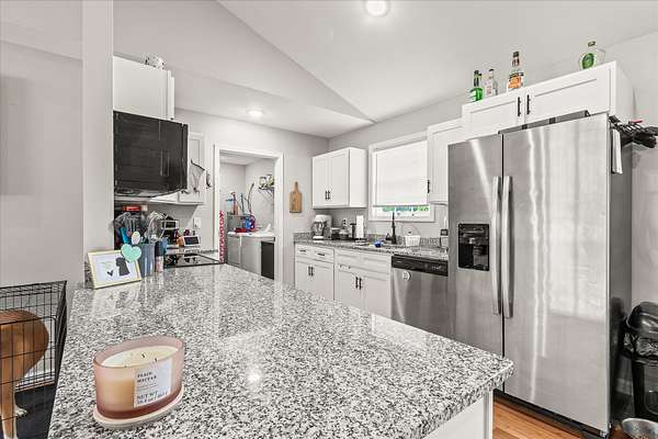 - Dishwasher, Electric Oven, Electric Range, Microwave, Refrigerator, Stainless Steel Appliance(s)