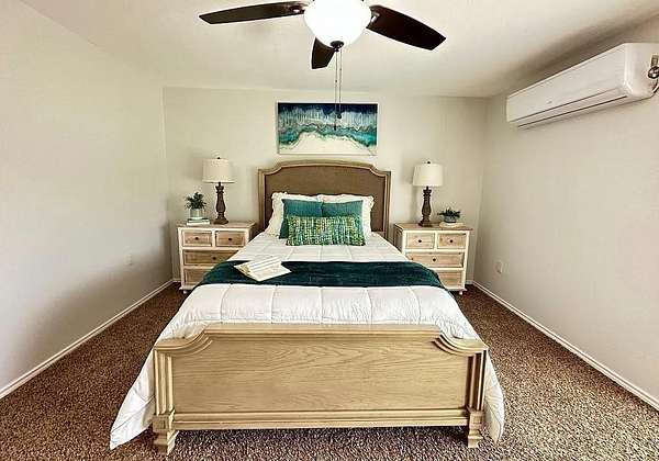 The primary bedroom serves as a relaxing retreat, complete with an en-suite bathroom and generous closet space. Two additional bedrooms offer flexibility for family, guests, or a dedicated home office. A conveniently located second bathroom serves the additional bedrooms and common areas.