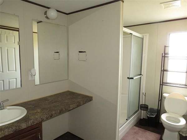 Spacious doublewide mobile home available for lease on a full acre in Sanger, offering a peaceful country setting with plenty of room to enjoy the outdoors. This 3-bedroom, 2-bathroom home features a functional layout with a large living area that flows into the dining space and kitchen, which includes ample counter space and appliances.