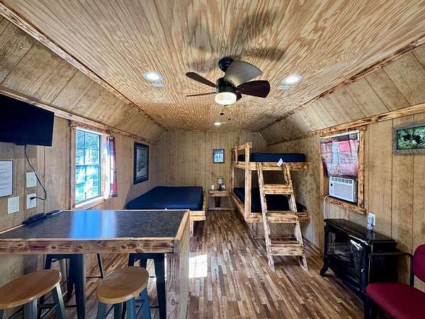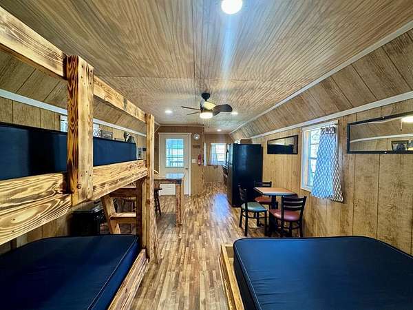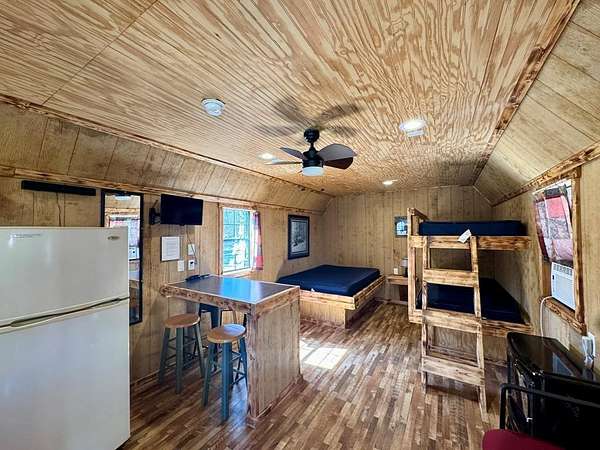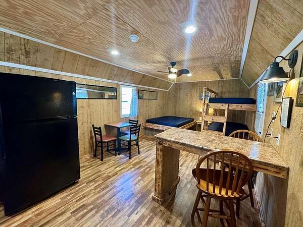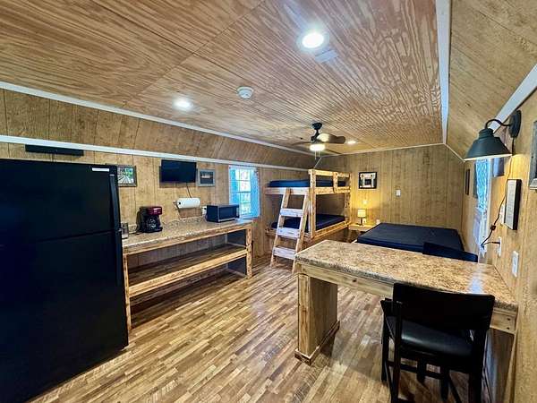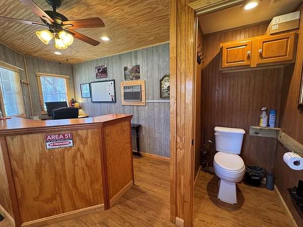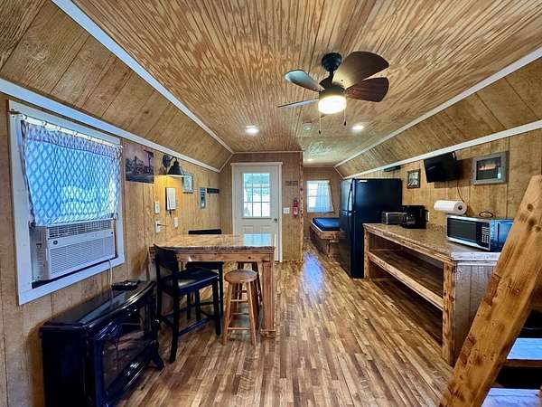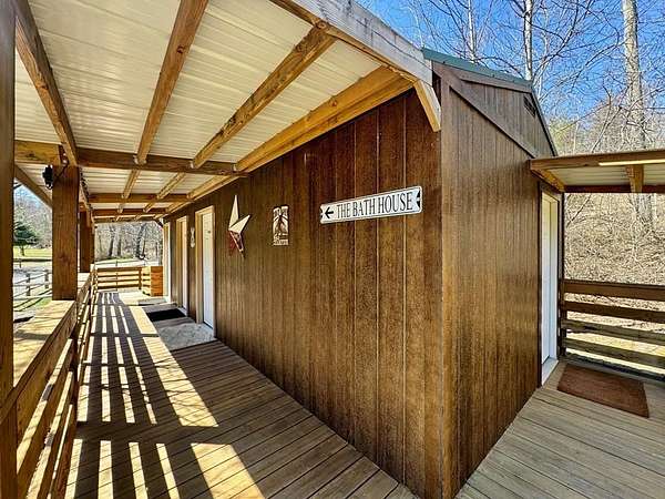 Unique 14.28-Acre Recreational & Commercial Property - Prime Location for Adventure Enthusiasts! Discover a rare opportunity to own a 14.28-acre commercial property perfectly designed for outdoor recreation and adventure! Currently operating as a recreational retreat, this property is ideally situated next to the Jenny Gap Mountain Tunnel entrance, surrounded by hundreds of miles of ATV trails, including direct access to the Burning Rock Off-Road Park and Outlaw Trails. Accommodations include: 4 cozy cabins equipped with heat, air conditioning, fridge, & microwave etc.1 cabin sleeps 5, 2 cabins sleep 4, & 1 sleeps 3. 5 gravel RV spots with 50-amp power, water, and sewer hookups Tent camping areas with access to all amenities. 3-bathroom bath house, with heat & air conditioning.
