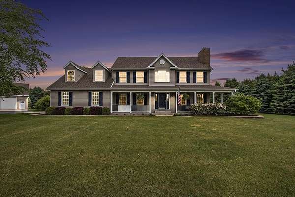 Looking for a secluded, serene retreat that you can call home? Look no further! This is it! 5 beautiful acres of privacy. This home boasts a 3 car attached garage along with another 3 stall detached garage/pole building (heated). Well established foliage, along with your very own grape ''vineyard''. 3 bedrooms on the upper level with a 4th in the lower level finished basement. The basement also houses the large family/rec room with wet bar. Open concept living with main level laundry. sliding glass door that opens to the patio and hot tub. Watch the wildlife from your private sanctuary. Lakeshore school district. 90 minutes from Chicago. 40 minutes to Notre Dame. Call Molly to view today.