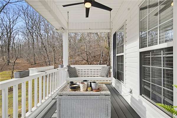 If you've been waiting for a property that feels like a true Ozark retreat, this is it. Tucked at the end of a private road on 18.69 acres, you'll find mature timber, an established trail system, and a natural spring with a small waterfall--land that's hard to find and nearly impossible to duplicate. Trail-cam photos show mature whitetail bucks moving through day and night with consistent travel corridors--this isn't "maybe you'll see wildlife," it's where wildlife lives. The spring runs through rock, adding a natural landmark you don't just view--you experience. And yes, morels in season. You're also about a mile from the Beaver Lake boat ramp, so lake days are easy. Inside: 4BR/3BA, 2,368 SF with split plan, office/den, soaring ceilings, quartz counter tops, and real wood floors. Upstairs bonus: apartment-style setup with 2nd living room + wet bar plus bedroom/bath--ideal for guests or multi-gen living. Large front porch + covered back patio. No HOA, no subdivision--just privacy and room to breathe.