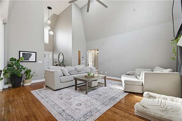 - Blinds, Cathedral Ceiling, Ceiling Fans, Eat-in-Kitchen, Pantry, Quartz Counters, Smoke Detector, Split Floor Plan, Walk-In Closets