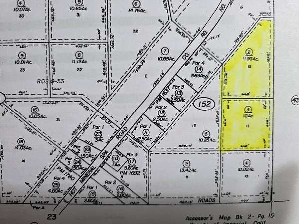 Est $200/moNiland, Ca. 21.93 acres More or Less off of Hot Mineral Spa Rd. Located on East side of Hot Mineral Spa Rd, South of Spa Rd. Zoned S-1-RE. APN 002-152-002-000 11.59 ac M/L gps Lat 33.368124 / Long -115.683277 and APN 002-152-003-000 9.83 ac M/L Lat 33.386081 Long -115.683442. Located East of Bombay Beach. Build your dream ranch or buy and hold for investment. Area known for Hot Mineral Spas / Waters and gorgeous winter weather.