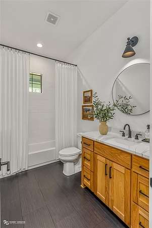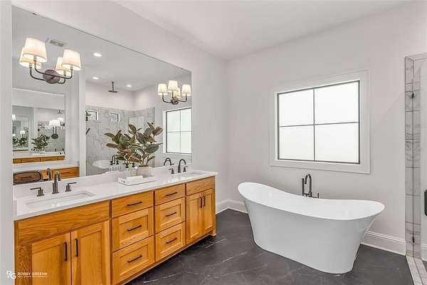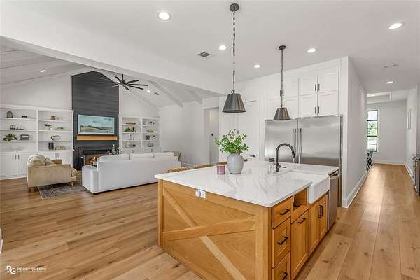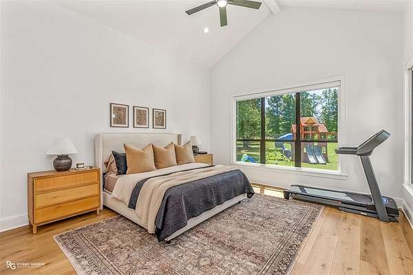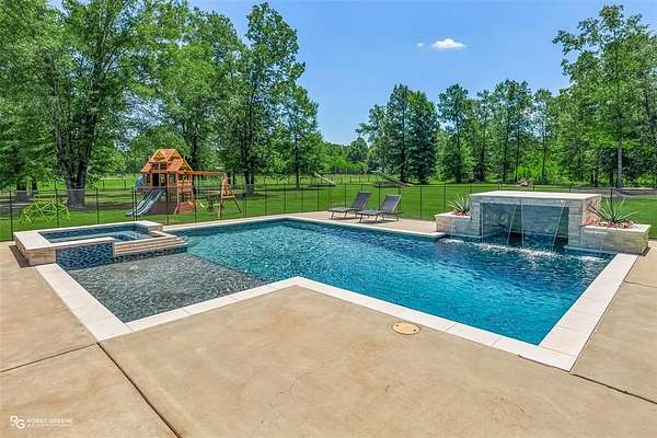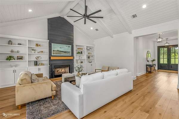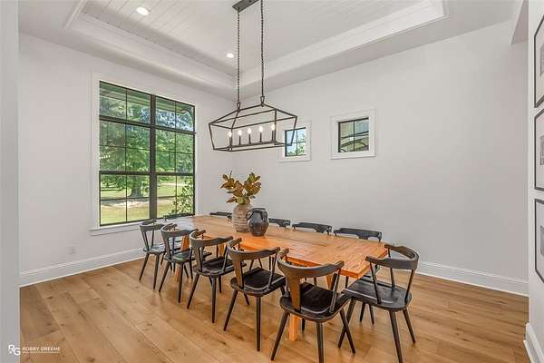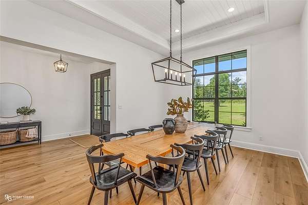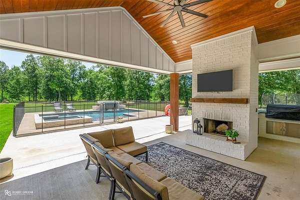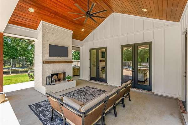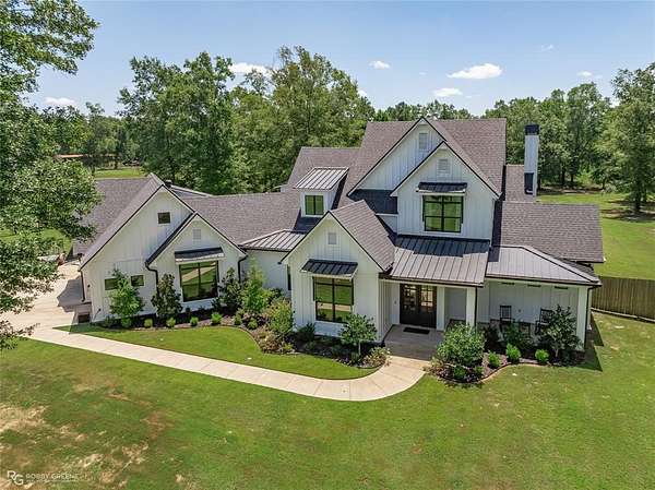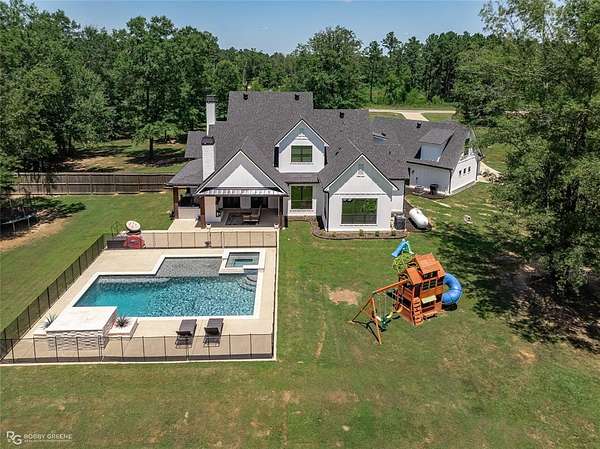 Built in 2020, this stunning Modern Farmhouse offers the perfect blend of elegance, comfort, and privacy. Featuring 4 bedrooms, 4.5 bathrooms, and nearly 4,000 sq ft of thoughtfully designed living space, this custom home is nestled on a 10-acre, tree-studded lot in the highly sought-after ND school district. From the moment you arrive, you'll be captivated by the home's picturesque exterior and serene surroundings. Inside, a welcoming entryway opens to a bright, open-concept floor plan with expansive views of the backyard and pool. Just off the foyer is a spacious formal dining room, perfect for hosting large gatherings. The living room impresses with vaulted ceilings, a cozy fireplace, and custom built-in cabinetry. The chef's kitchen is a showstopper featuring a gas cooktop, tile backsplash, soft-close cabinetry, stylish pendant lighting, a commercial-style refrigerator, a generous island, a walk-in pantry, and a wet bar ideal for entertaining. The luxurious primary suite serves as a private retreat, complete with double vanities, a custom tile shower, a freestanding soaking tub, and a large walk-in closet. Also on the main floor is a flex room, along with a full bath and a spacious utility room with ample cabinetry, a sink, and laundry hanging space. Upstairs, you'll find three additional bedrooms, a full bath, and an oversized bonus room with a convenient half bath. Outdoor living is truly exceptional, featuring a fully equipped outdoor kitchen with grill, fridge, and sink, a poolside full bath, and a cozy fireplace on the covered patio, all overlooking a sparkling gunite pool.This beautifully crafted home seamlessly blends timeless design with modern amenities and a peaceful setting, making it the perfect place to live, relax, and entertain.