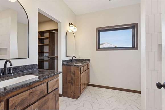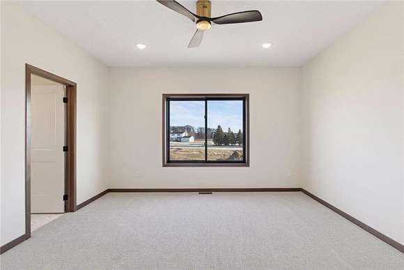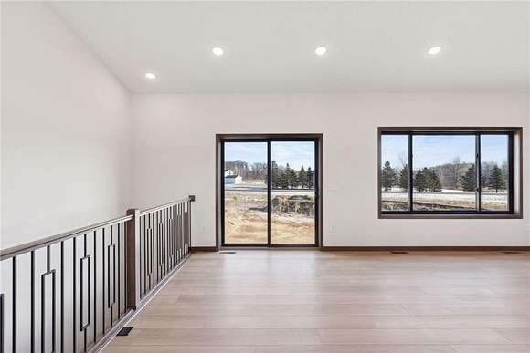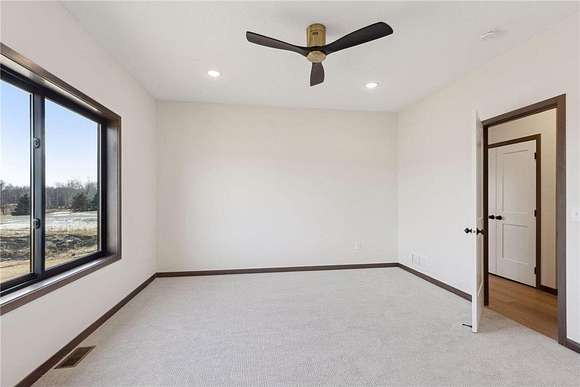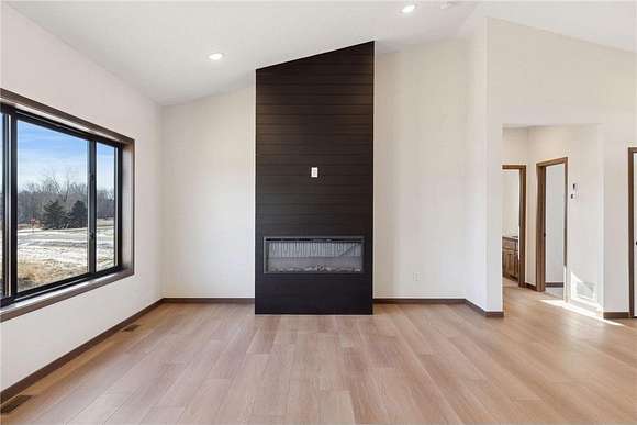 Est $3,580/moWelcome home to this brand new rambler floor plan. It is the first home in Strandlund Farms neighborhood, and we have 16 additional lots available. This home offers all living on one level, with LVP flooring throughout, black Anderson windows, quartzite kitchen countertops, custom knotty alder cabinetry, and a walk out basement. It sits on a 2 acre corner lot.
