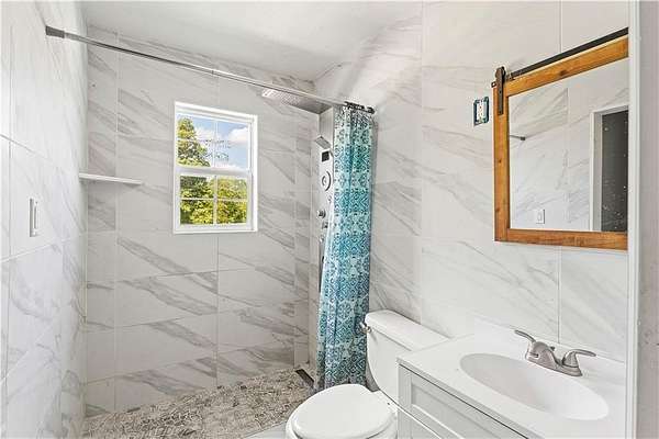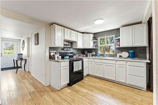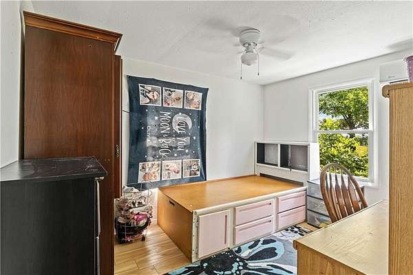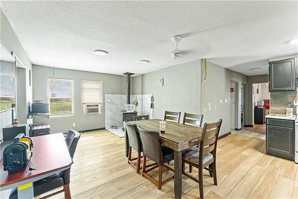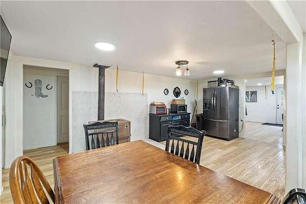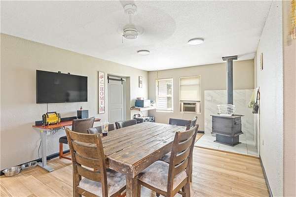- Blinds, Built-Ins, Ceiling Fans, Eat-in-Kitchen, Ice Maker Connection, Pantry, Split Floor Plan, Walk-In Closets, Woodstove