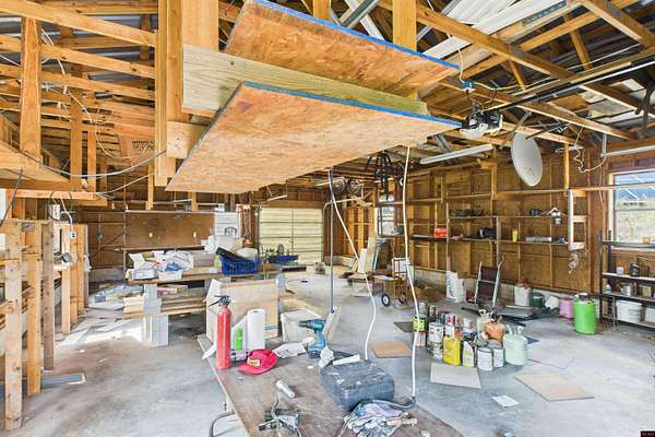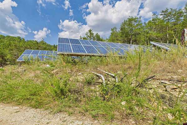 Est $1,391/moEscape to this 3-bedroom, 2-bath residence situated on 27.56 acres m/l, three miles down a county road with multiple bridge crossings, offering both privacy and scenic surroundings. The home is well-kept, with an eclectic design, and wonderful wrap-around deck. The property features a large, established garden area equipped with irrigation and sprinkler systems sitting next to a year-round creek, and a 1,100 sq. ft. shop suitable for a variety of uses. Energy efficiency is enhanced by a huge solar panel field connected to the grid, with excess power sold back to the local electric co-op. Additionally, a small studio cabin located below the main home presents an excellent opportunity for renovation or guest accommodations with some TLC.