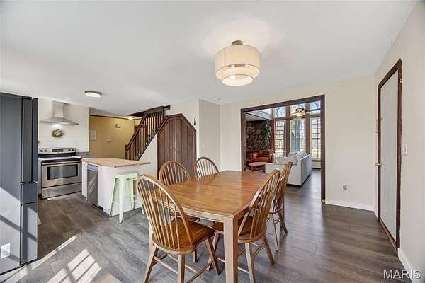 - Kitchen Island, Kitchen/Dining Room Combo, Vaulted Ceiling(s)