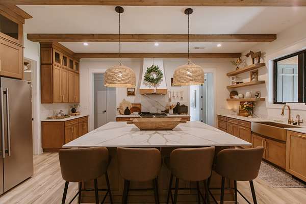 Set quietly along the Duck River in Maury County, this custom-built home is a place where craftsmanship, land, and lifestyle come together with intention. As you arrive, the home reveals itself across 6.81 private acres. Spanning 3,880 square feet, the residence has been thoughtfully designed to balance modern comfort with timeless rural character. The layout unfolds effortlessly - four bedrooms, including a serene primary suite and a private guest en-suite complete with its own secondary living space and kitchenette. Upstairs, two additional en-suite bedrooms offer privacy and flexibility, while a dedicated home office and expansive bonus/theater room create space for focused workdays and memorable evenings. Throughout the home, custom finishes and built-in storage reflect a level of care rarely found in new construction.