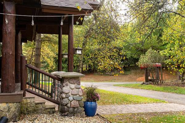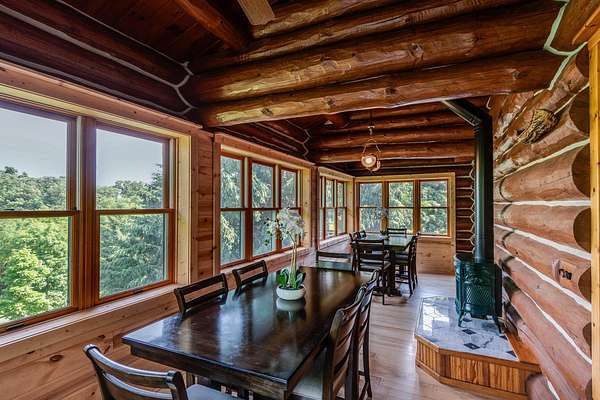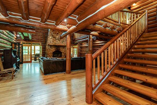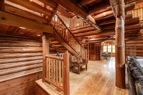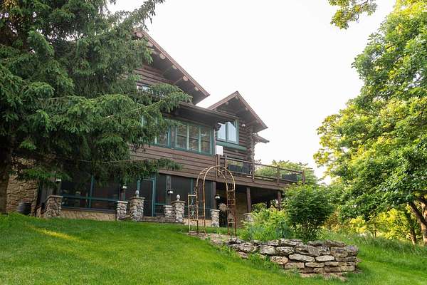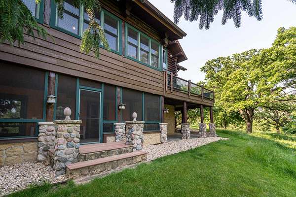 Escape to elegance in this exquisite luxury log home set on 61 acres of rolling countryside. Designed for those who crave beauty, privacy, and sophistication, this one-of-a-kind estate also serves as a premier wedding venue and a luxury vacation rental. Two creeks meander through the property, which includes 30 acres of farmland and wooded acreage ideal for hunting or exploring. Whether you're hosting an intimate ceremony near the lodge or a grand celebration atop the prairie with sweeping views, every moment here is unforgettable. A charming 2-bedroom apartment above the garage adds versatility--please note the bathroom is non-functional. This is country living reimagined with elegance and intention. It's more than a home--it's a lifestyle, a destination, and the start of forever.