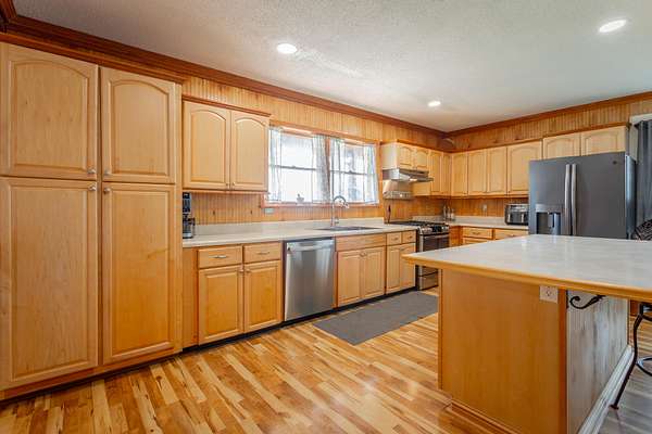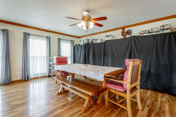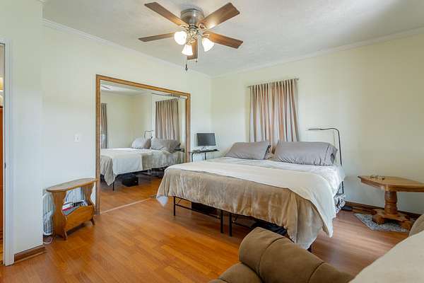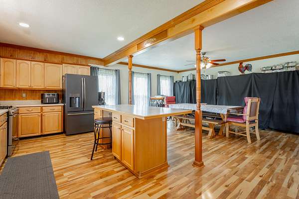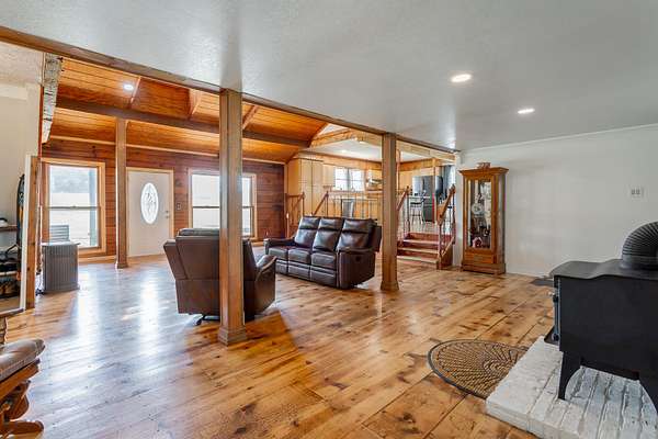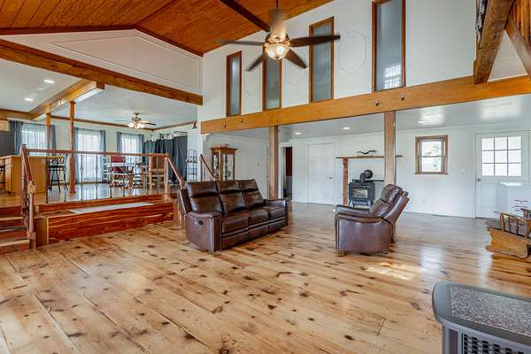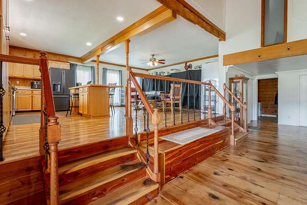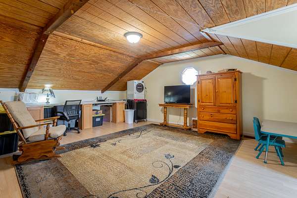 Step outside to discover the true appeal of this property. The mostly level 4-acre lot is fenced and includes mature trees, fruit trees, and ample space for gardening or recreation. Two large barns or garage buildings, along with a detached enclosed shed, provide abundant room for storage, hobbies, or workshop space.