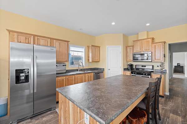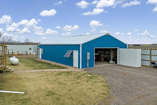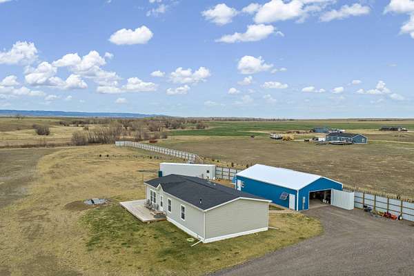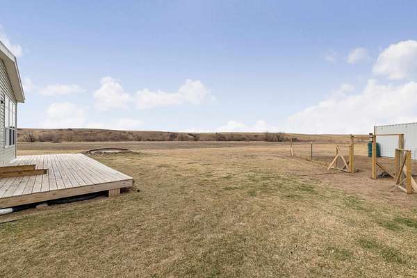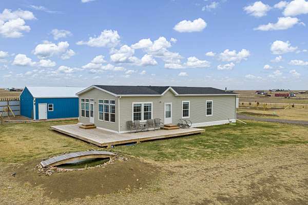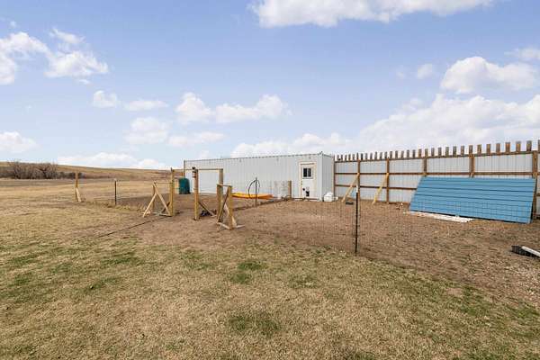 Lised by Elissa Erickson, KWBH, 605-877-4060. Welcome to your private slice of the countryside- sprawling 9.52 acres with hillside views, a move in ready home and detached shop building, and space to bring your hobby farm dreams to life! Partially fenced, flat usable acreage, and Antelope Creek along the entire western and southern border of the property, lined with wild plum, chokecherry, and currants are a few of the highlights the land has to offer. This property also offers a one-level home, complete with 3 bedrooms, 2 bathrooms and a smart layout for one-level living. One end of the home has an open concept living area with 9' ceilings, corner windows for beautiful views and great natural light. Spacious kitchen with ample cabinet and counter space, Whirlpool appliances and an island for convenient seating and storage. Private primary suite with ensuite bathroom and walk in closet in back corner of the home, plus 2 additional bedrooms and 1 bathroom- great for for family or guests. Outside has a south facing, wrap around deck- perfect for watching sunrises, sunsets or spending time under the starry sky. Detached 48'x30' pole barn has electricity, shower and sink, solar panel. 40 foot storage container with built-in chicken coop for added self-sustainability. Home is on a permanent foundation, and seller installed 400' of metal panel windbreak fencing and a drip irrigation system. Modern comfort and rural charm- this home has both. Call today! Association well $117/mo.