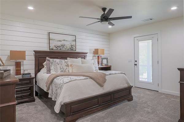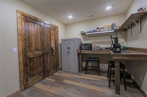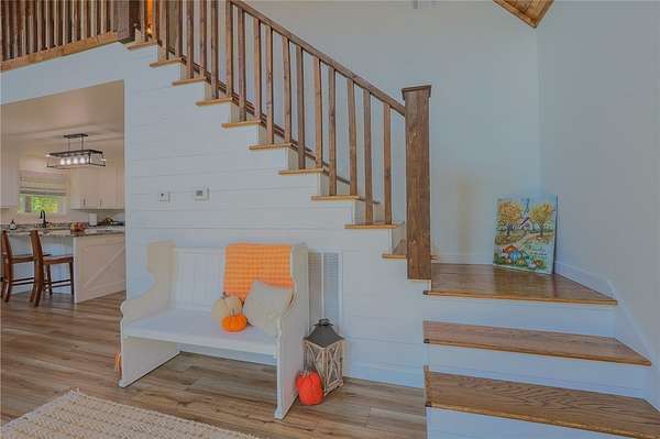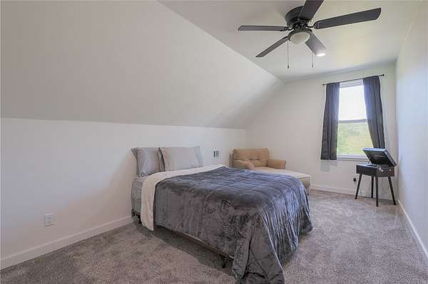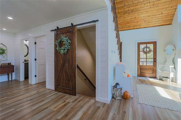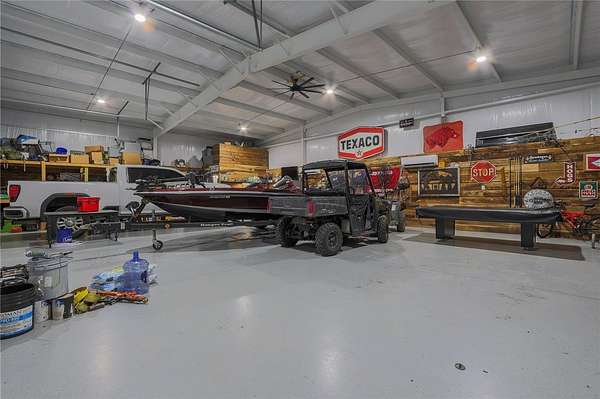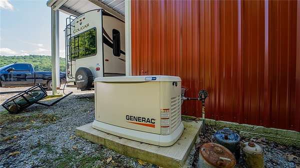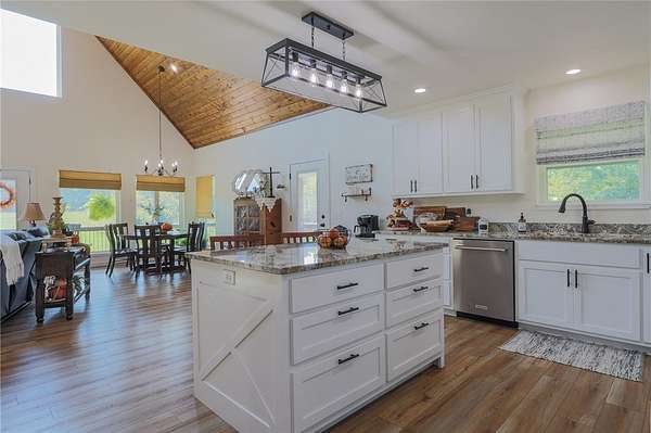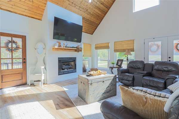 Built in 2023 and nestled on 15 acres, this three-story 4174 sq ft house with 1328 sq ft of wrap around porch offers it all. The main level features an open plan great room with cathedral ceilings, a fireplace, and a stunning staircase. The gourmet kitchen features granite countertops and upgraded appliances (refrigerator conveys). The primary bedroom opens to the porch with serene country views and a seasonal spring. The primary bathroom has an enormous, tiled shower and his and her closets. A half bath and mudroom complete the main level. The upstairs offers two bedrooms, a full bath, and extra storage. The walk-out basement includes a huge family/game room, office, two bedrooms and a FEMA approved saferoom. A generator and outdoor wood furnace keep this home comfortable and functional even during storms. In addition to the dream home, the property includes an 1800 sq ft heated/cooled shop (2808 under roof) with kitchen, bathroom, and septic system making this a perfect opportunity for an Airbnb or venue.