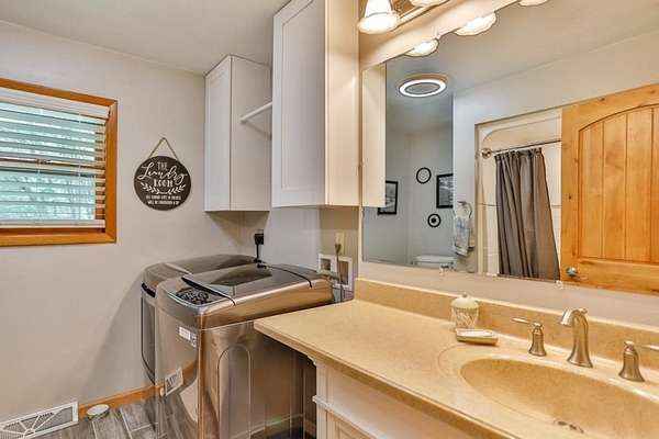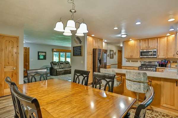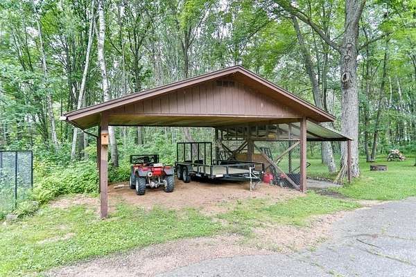 Location, location, location! This beautifully remodeled home sits on 4.45 acres in Rib Mountain - just minutes from Nine Mile County Park, Rib Mountain recreation, walking, hiking, skiing, and local retail, restaurants, and more! This 2,652 sq. ft. home offers a blend of rustic charm and modern amenities in a functional one-level-living ranch layout, with an attached 2-car garage, 20x20 covered canopy, fenced area (great for pets), plus with a 2+ car heated outbuilding with concrete floor and separate electrical panel - great for a home workshop or extra vehicle / recreational storage. The main floor, spanning 1,652 sq. ft., houses a semi-open-concept design combining the kitchen, dining room, and living room, with an amazing sunroom off the back. The kitchen boasts quality cabinetry, quartz countertops, high-end Samsung stainless appliances, undermount sink with garbage disposal and a stunning tiled backsplash. Freshly painted interior with updated luxury vinyl flooring extending throughout and included wood blinds!