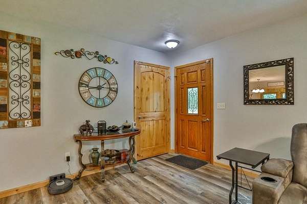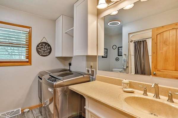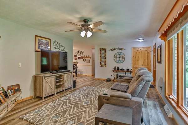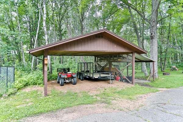 Location, location, location! This beautifully remodeled home sits on 2.24 acres in Rib Mountain - just minutes from Nine Mile County Park, RibMountain recreation, walking, hiking, skiing, and local retail, restaurants, and more! This 2,652 sq. ft. home offers a blend of rustic charm and modern amenities in a functional one-level-living ranch layout, with an attached 2-car garage, 20x20 covered canopy, fenced area (great for pets). Additional 2.21 acres along the back with a detached 2-car shed is separately for sale for $98K - heated with concrete floor and separate electrical panel - great for a home workshop or extra vehicle /recreational storage. The main floor, spanning 1,652 sq. ft., houses a semi-open-concept design combining the kitchen, dining room, and living room, with an amazing sunroom off the back. The kitchen boasts quality cabinetry, quartz countertops, high-end Samsung stainless appliances, undermount sink with garbage disposal and a stunning tiled backsplash. Freshly painted interior with updated luxury vinyl flooring extending throughout and included wood blinds!