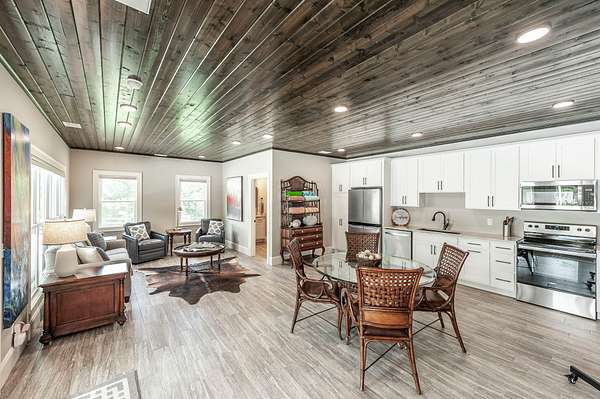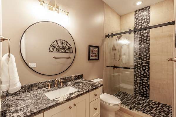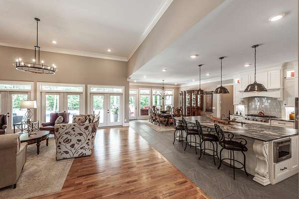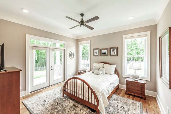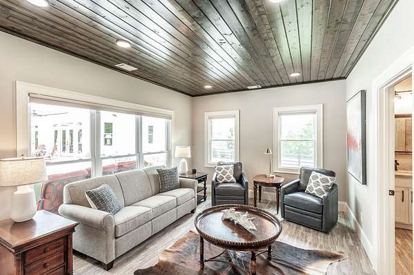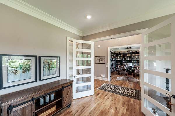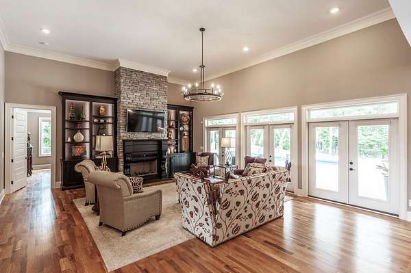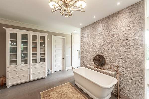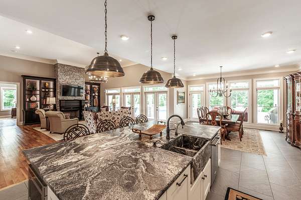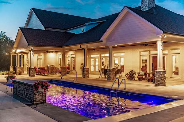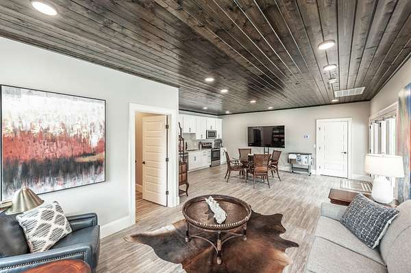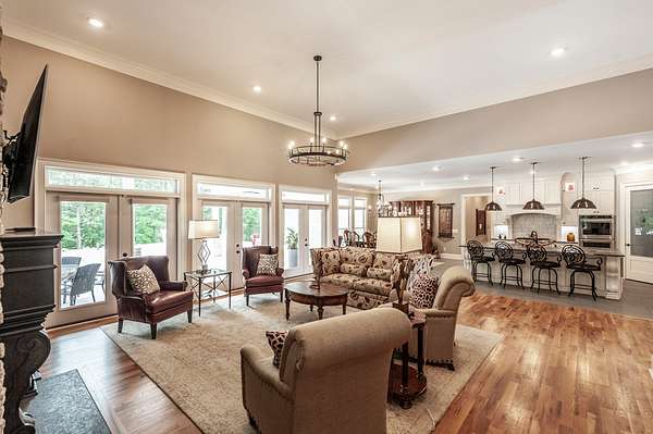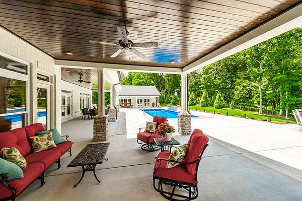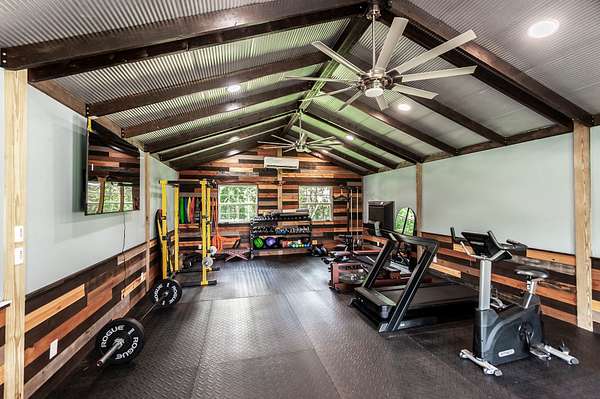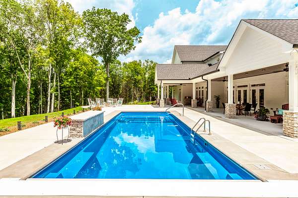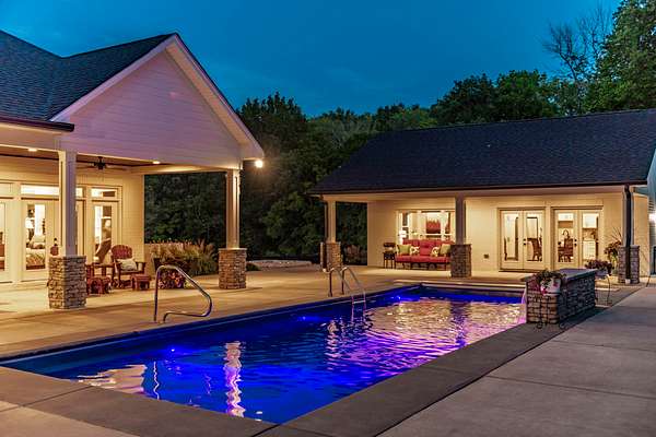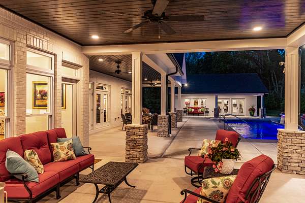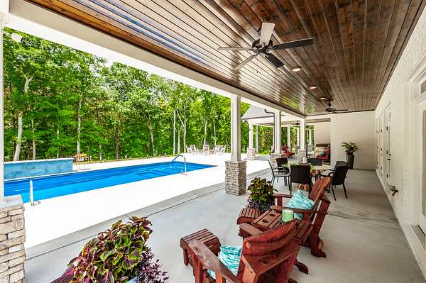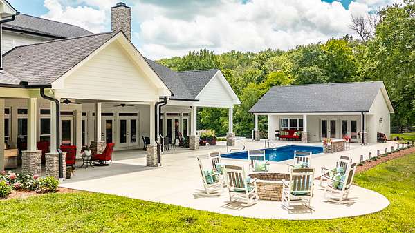 The main level includes three en-suite bedrooms with patio access, while the primary suite boasts dual custom closets and a spa-like bath. Upstairs, a custom bar, wine storage, and game lounge provide elevated entertainment, complemented by a tranquil observatory, private study or fifth bedroom, and second primary suite. Beyond the main residence, a pool house and elegant barn with fitness space offer versatile amenities. Enjoy resort-style living with a heated pool, hot tub, and designer fire pit amidst lush grounds. Welcome to Grandview Estate, where architectural excellence meets countryside luxury for an immersive lifestyle experience.