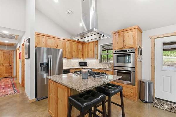 377+ Acre Premier North Texas Recreational & Hunting Retreat Welcome to an exceptional 377+ acre legacy property in the rolling hills of Montague County where rugged natural beauty meets thoughtful, turnkey improvements. With over 200 feet of elevation change, this ranch offers a rare combination of panoramic views, dense hardwood cover, and open pastureland ideal for both recreation and wildlife management. Designed with the avid outdoorsman in mind, the property is a fully equipped hunting and shooting retreat featuring an established skeet shooting range and a dedicated rifle range. The land supports abundant native wildlife, creating an outstanding environment for year-round recreation. The ranch is equally impressive in its improvements, offering four residences totaling over 7,000 square feet of living space. The main home is well appointed for comfort and entertaining, featuring a 6 burner gas range, dual dishwashers, tankless water heaters, wireless televisions, and expansive covered front and back porches that capture the surrounding views. A wood-burning stove and Cowboy Cauldron firepit create inviting gathering spaces for cool Texas evenings. Additional accommodations include a recently renovated casita and a log cabin with a new roof perfect for guests, family, or ranch staff. A 3,600 square foot metal barn provides ample storage for equipment, ATVs, and ranch operations. Water is abundant with two wells and five large ponds, supporting both livestock and wildlife. Infrastructure has been carefully considered with a 20KW Generac backup generator, whole-house reverse osmosis water filtration system, and reliable connectivity via Nextlink internet with Starlink backup. Safety and security features include a Class 5 above-ground tornado shelter, a dedicated gun room, and a secure safe. Rare opportunity to own a fully improved recreational ranch that seamlessly blends comfort, functionality, and natural beauty just a short drive from the DFW Metroplex.