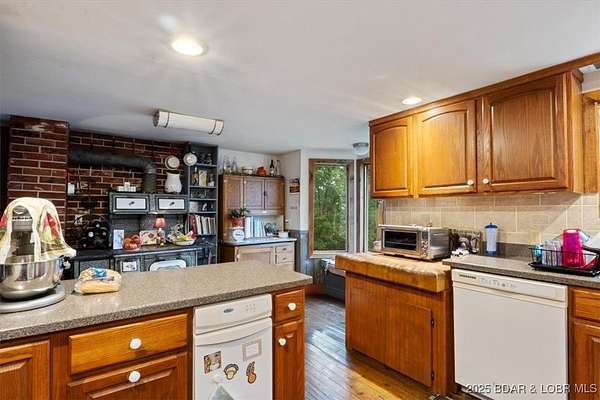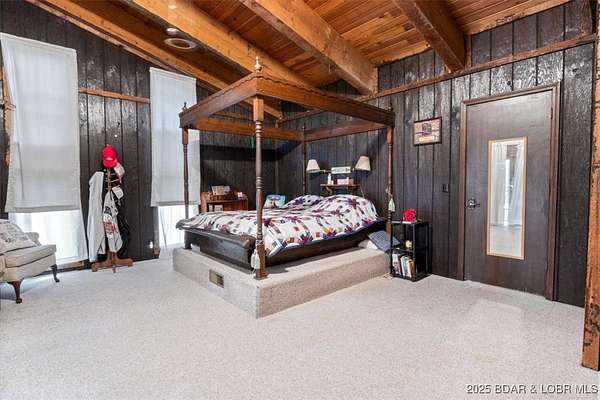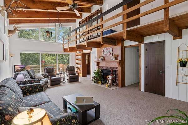 Discover country charm and rustic elegance in this 3-bedroom, 2.5-bath home nestled on 20.7 peaceful acres with a 1 acre stocked pond. From the moment you step onto the covered porch, you'll be captivated by the warmth and character this home offers. Inside, vaulted ceilings and rustic log beams create a welcoming lodge-style feel, while large windows bring in an abundance of natural light and scenic views. The spacious kitchen features an antique wood-burning stove, adding a cozy, timeless touch. The massive master suite is a true retreat with tall vaulted ceilings, a large en-suite bathroom, and plenty of room to unwind. A bright and airy sunroom offers the perfect space to relax year-round. Outside, the property features a huge shop with an apartment, perfect for guests, rental income, or a home-based business. Multiple outbuildings provide ample storage or workspace for hobbies, equipment, or animals. Whether you're dreaming of a hobby farm, homestead, or just space to roam, this property delivers. With open land, woods, a pond, and plenty of charm, this is your chance to own a one-of-a-kind country escape.
