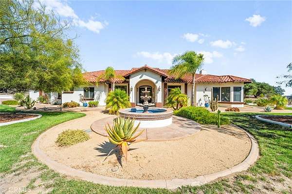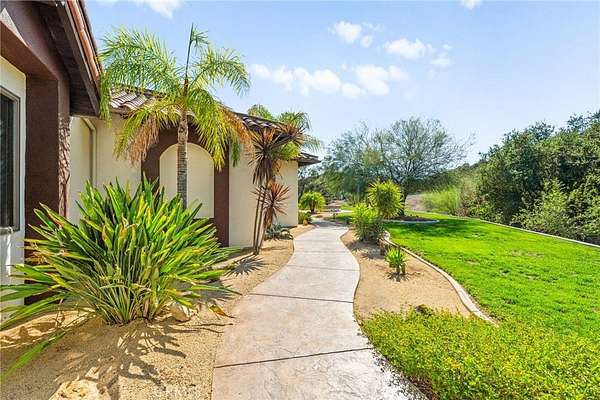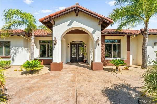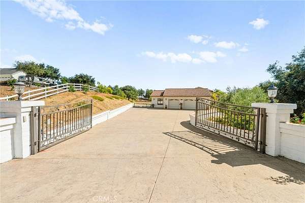 Experience the perfect blend of elegance and tranquility in this stunning estate bordering the Santa Rosa Plateau, where rolling hills and sweeping views create an unmatched backdrop. From the moment you arrive, the automatic gate opens to over 7,000 square feet of custom reinforced concrete--offering privacy, RV storage, and a grand first impression.