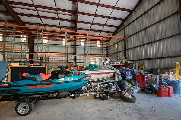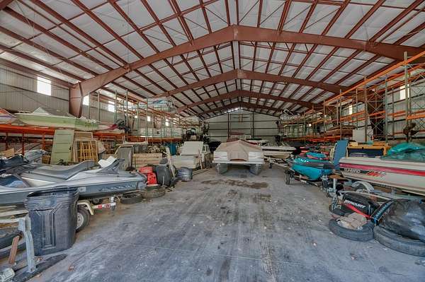 This boat storage business is located just north of North Twin Lake in Phelps, off STH 17. The impressive main building spans 100'x150', with 24' walls and a 31' peak, featuring a concrete floor and storage racks that can stack boats up to 4 high. A forklift is included for easy access. A secondary 1,250 sq. ft. building is available, perfect for converting into an office to manage the business. The property offers city sewer and water, electric baseboard heat, and a window A/C unit. Additionally, an adjacent vacant lot is included, providing space for potential expansion. With the purchase of an additional building across from the parking lot in town, you could set up your own marina business!