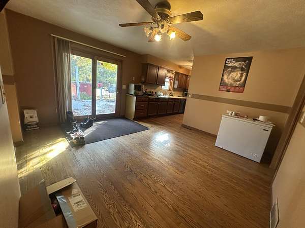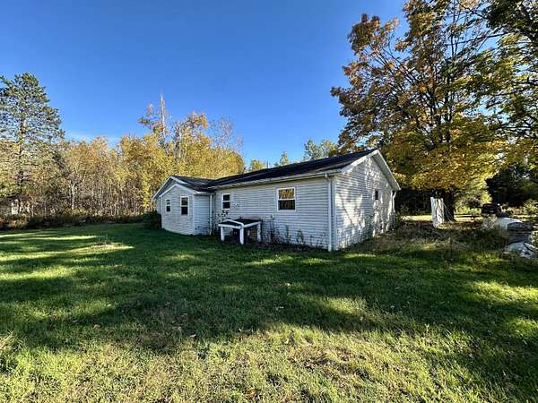 Looking for a flip or maybe a country living feel! This spacious 4-bedroom, 2-bath home offering nearly 1,600 sq ft of comfortable living space. Nestled on just under 10 wooded acres. The property enjoys year-round accessibility via a paved, well-maintained road. Outbuildings include a 24x30 garage with a concrete floor and electric, perfect for vehicles, hobbies, or storage, and a 24x30 barn with lean-to's, ideal for livestock, equipment, or additional storage. While the home does require repairs; needs a new roof due to an active leak and will need attention to some floor joists, it presents a fantastic opportunity to invest in sweat equity and tailor the space to your vision. Features include a cozy gas fireplace, a dedicated propane tank, water heater. Sold as is.