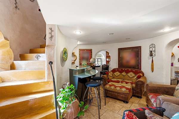 Spread across 3.8 acres, this Seton Village compound is a secluded retreat with one of a kind architectural details. Its unique character is accentuated by its beautiful location in a well-established neighborhood. This property can generously accommodate large families or groups of friends. Alternatively, it could serve as an investment asset with excellent potential for targeted updates and long-term development. The sprawling estate offers multiple structures for every possible activity. Each building is self-contained and thoughtfully located for privacy and ease of access. On the northern end of the property, the main home and adjacent guest house contain 6 bedrooms/5 baths and numerous living/gathering spaces. The second story of the main house provides panoramic views of the surrounding valley. Features include a kiva fireplace, wood stove, refinished flagstone and brick floors, handcarved vigas, coved ceilings, several mini-splits and multiple washers and dryers. Additionally, a finished basement provides ample space for storage. On the southern side of the property, three dome-roofed structures provide a distinct contrast. These Spanish/Moorish styled buildings can easily accommodate multiple guests or provide plentiful space for hobbies or projects. These buildings are currently configured with 1 bedroom and 3 baths. Finally, a small but picturesque converted well house is a blank slate, allowing for further opportunities. The property's infrastructure is well-maintained with updated roofing and stucco, along with a private well, two septic systems, and abundant parking. The landscaping is a lovely balance of open spaces interspersed between native plants and grassy areas. This 6400 square foot compound offers an unparalleled opportunity to easily invest or put down roots in a sought-after area.