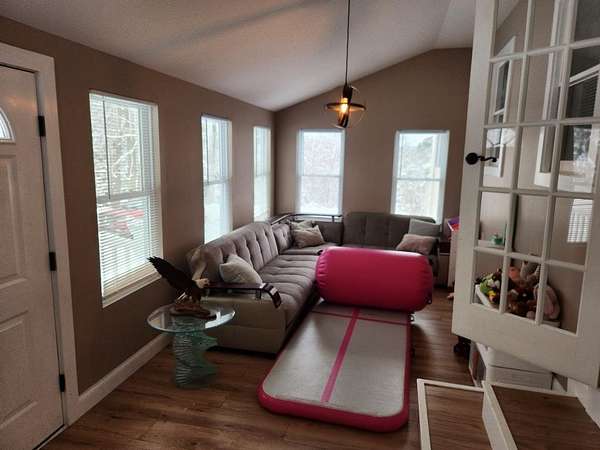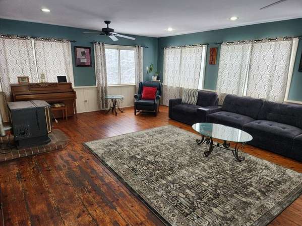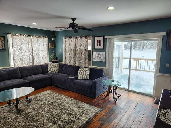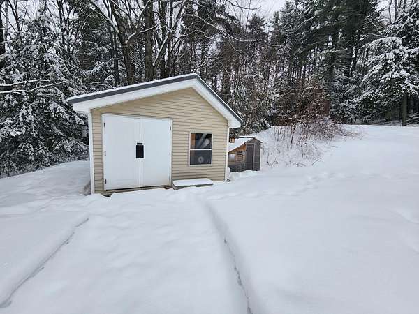 Very spacious home, set back off a quiet country road. Sitting on almost 2 acres of landscaped property. Very close to Lake Horace and parking for multiple vehicles. Direct entry garage with an additional separate garage, ideal for a workshop or recreational vehicles. Oversized deck leading to the above ground pool, additional out building for extra storage and a bonus screened in porch. oversized Family room with a pellet stove, and windows all around is ideal for large gatherings. Primary bedroom with a walk in closet and a slider opening up to a balcony overlooking the back yard and pool area. This is an ideal home if you need extra space and 4 bedrooms. There is a full bath on each level. Recent improvements to the sun porch make it an ideal separate space for a home office. The roof has been replaced with maintenance free metal.