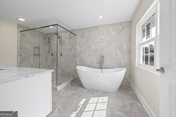 - Bookcases, Double Vanity, Entrance Foyer, High Ceilings, In-Law Floorplan, Master On Main Level, Roommate Plan, Separate Shower, Soaking Tub, Split Bedroom Plan, Tile Bath, Walk-In Closet(s)