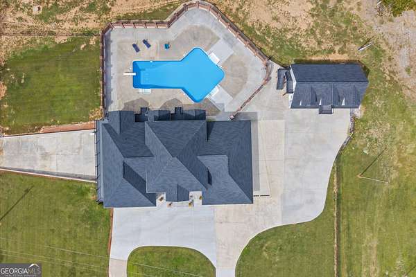 Luxury Gated Estate with Custom Pool on 6.12 Acres - 22 Anderson Thomas Road, Martin, GA (Franklin County) Completely renovated and newly completed, this stunning custom estate combines timeless Southern architecture with modern luxury and resort-style amenities. Set on 6.12 fully fenced and gated acres in Martin, Georgia (Franklin County), this home offers privacy, elegance, and versatility - all within minutes of Lake Hartwell, Lavonia, Royston, and I-85. The grand two-story foyer features exposed beams and an open staircase, setting a warm yet impressive tone. The main level showcases a massive living room with extended spaces perfect for entertaining, multiple sitting areas, or formal dining. At the heart of the home, the upgraded custom kitchen offers beautiful craftsmanship with high-end cabinetry, designer finishes, and a spacious breakfast bar, ideal for everyday dining or casual gatherings. Every surface and fixture throughout the home reflects precision, quality, and timeless design. Step through French doors leading directly to the custom-designed in-ground pool, enclosed by brick privacy fencing and surrounded by manicured landscaping - a luxurious outdoor retreat ideal for entertaining or relaxing in total privacy. The main floor includes two spacious bedrooms and three full bathrooms, all thoughtfully designed with luxury finishes and abundant natural light. Upstairs, you'll find two additional oversized bedrooms, each with its own spa-inspired en-suite bathroom, providing private comfort for family or guests. The finished basement level offers a vast, open layout that can easily transform into a home theater, gym, classroom, or recreation suite, making it adaptable to any lifestyle. A fully equipped garage apartment provides a kitchen, living area, and bath - ideal for multi-generational living, guests, or an executive home office. With a total of eight garage spaces, this estate offers unmatched function for collectors, hobbyists, or those seeking premium storage and workshop capacity. From the gated entrance and circular drive to the brick-fenced pool terrace, this home defines modern Southern luxury. Every inch has been meticulously updated - no corners cut, no detail overlooked - making this a move-in ready estate in one of Franklin County's most desirable areas, close to Lake Hartwell and the charm of Northeast Georgia living.