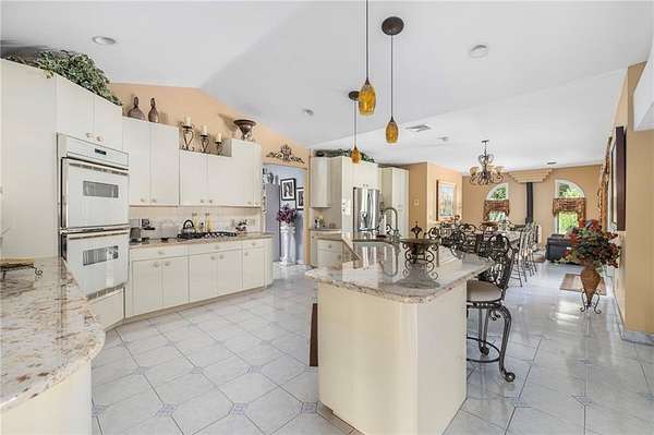 Discover refined living in this exceptional luxury residence, available for the very first time. A welcoming covered entryway sets the tone for the bright, open floor plan inside, where soaring ceilings create an immediate sense of space and elegance. At the heart of the home, a large kitchen features generous counter space, quality finishes, and effortless flow into the dining and living areas, which are ideal for gatherings both large and small. This home features three large bedrooms and 2.5 bathrooms, including a luxurious primary suite with a private en-suite bathroom, a spacious walk-in closet, and heated floors for year-round comfort. A versatile flex room adds even more options for a home office, studio, or a fourth bedroom. Recent upgrades include a new cooling system providing modern comfort and peace of mind. Car enthusiasts and collectors would appreciate the rare combination of a two-car attached garage plus a detached garage with capacity for up to twelve vehicles! On the lower level, high ceilings create exciting possibilities, from a private gym or media room to a lounge or creative retreat. Step outside to a private fenced-in oasis featuring lush gardens, patios, and serene spaces to relax or gather. The expansive grounds offer the flexibility to keep farm animals, creating a rare opportunity to enjoy country living without sacrificing modern luxury. Tucked away in a quiet setting on a cul-de-sac, it offers both privacy and accessibility--a true market rarity!