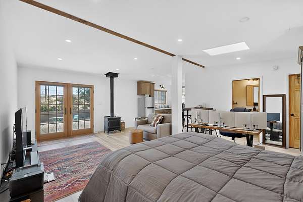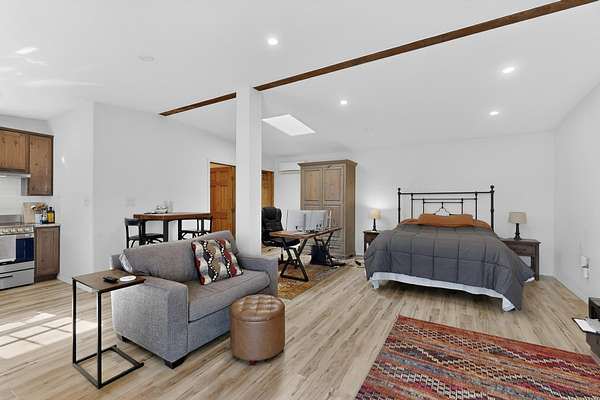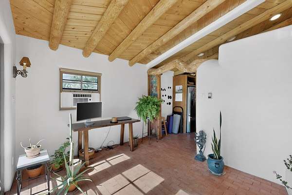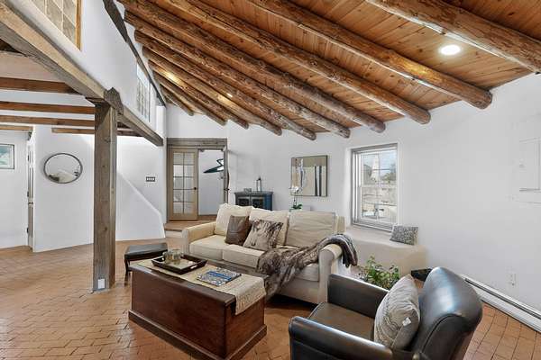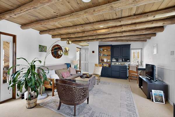 Experience the charm of Placitas, New Mexico on 4.72 acres with a distinctive main residence, separate casita, and equestrian potential. Full of warmth and character, this unique property showcases timeless Southwestern style with exposed vigas, rustic wood ceilings, adobe-inspired details, inviting living spaces, and abundant natural light.The spacious kitchen offers functionality and prep space, while the casita provides flexibility for guests, multigenerational living, a studio, or home office. Outdoors, enjoy peaceful surroundings, expansive views, horse potential, two stalls, and room to truly enjoy the land. A rare opportunity with charm, privacy, and versatility.