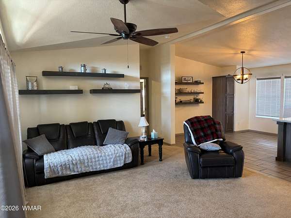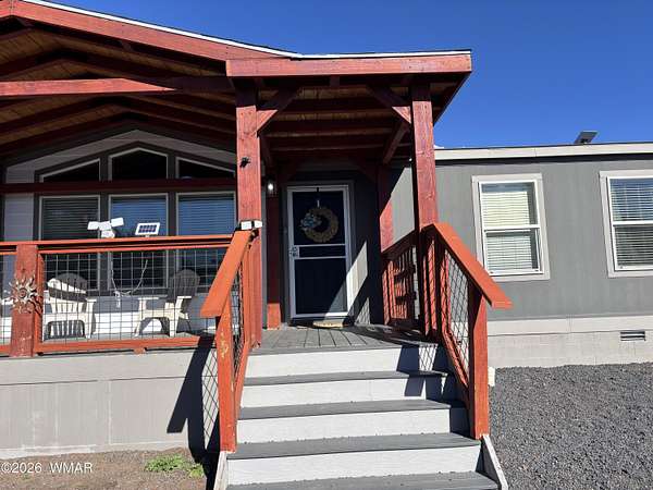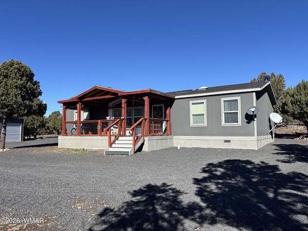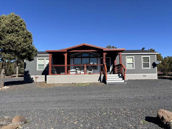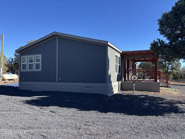 Tucked away in the highly desirable Show Low East neighborhood, this beautifully maintained 2018 model home offers the perfect blend of privacy, comfort, and mountain charm. Situated on a heavily treed 1.8-acre lot, you'll enjoy the peace and quiet of a true White Mountains retreat, with low traffic and added seclusion thanks to the neighborhood's single road in and out. This 1,456 sq ft, 3-bedroom, 2-bath home is in excellent condition and thoughtfully designed for easy living. A very functional layout, and serene views from the large front porch create an inviting getaway and atmosphere that feels like HOME the moment you arrive. One of the standout features of this home is the impressive 25x36 ft garage, complete with double doors and a dedicated shop area perfect for hobbies, storage, projects, or outdoor toys. Whether you're a weekend tinkerer or need space for work and play, this garage delivers. Did I mention there is space to park an RV? Located in the small, welcoming community of Vernon, Arizona, in the heart of the White Mountains of Northeast Arizona, this property offers cooler temperatures, star-filled skies, and a slower pace of lifewhile still being within reach of modern conveniences. If you're looking for quiet, space, trees, and quality, this Show Low East home is a must-see. Come experience the lifestyle this special property has to offer.