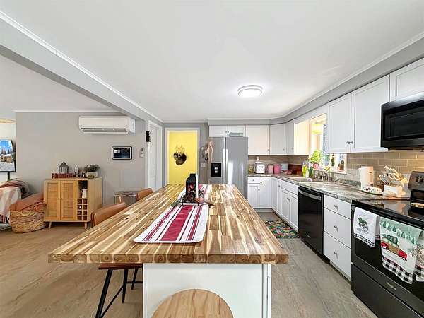 Set on 7 acres in Connor TWP, this property is bordered by Halfway Brook and offers the space and privacy many buyers are looking for, with the bonus of Connor's lower property taxes. 22 Cote Road is a 3-bedroom, 1-bath ranch with a practical layout, tasteful updates, and great outdoor living. Step in through the mudroom, featuring a walk-in closet that makes everyday storage easy for coats, boots, and gear. From there, the home opens to an updated kitchen with modern white shaker-style cabinetry and a center island topped with a butcher-block countertop. The living room stands out with vaulted ceilings and an abundance of windows that fill the space with natural light. All three bedrooms and the full bath are conveniently grouped nearby. Heating and cooling options include an electric heat pump for efficient comfort plus a hot-air furnace. Downstairs, the basement is currently set up as a workout area and includes laundry hookups. Outside, enjoy a spacious rear deck for relaxing and entertaining, along with a 2-car detached garage. Vinyl siding and a metal roof add to the home's practicality. You'll appreciate the country setting with an easy drive into Caribou for shopping, dining, and everyday conveniences. Be sure to check out the video and 3D Virtual Tour options! A floor plan is also included in the listing to better understand the layout.