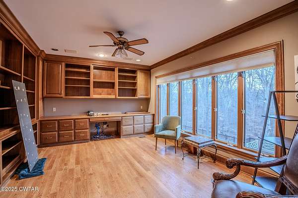 - Bookcases, Ceiling Fan(s), Eat-In Kitchen, Elevator, Entrance Foyer