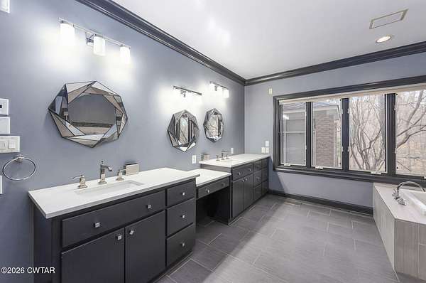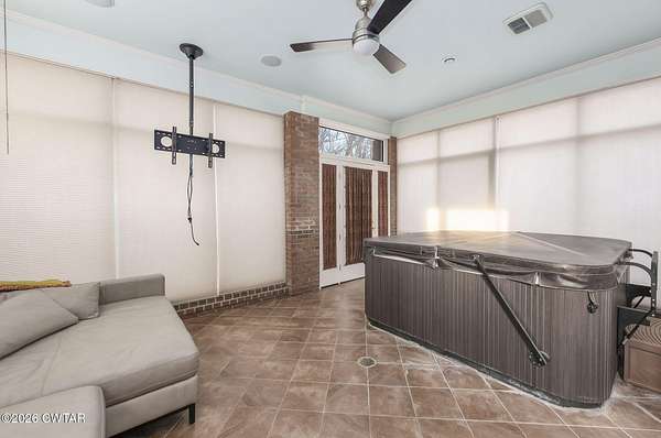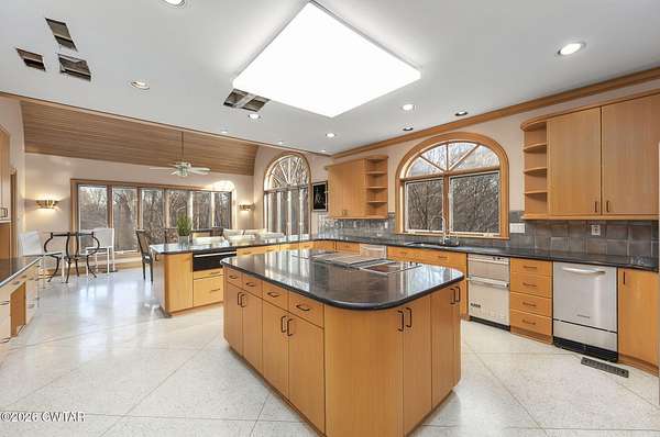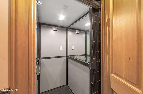 - Bookcases, Breakfast Bar, Ceiling Fan(s), Ceramic Tile Shower, Commode Room, Double Vanity, Eat-In Kitchen, Elevator, Entrance Foyer, High Ceilings, Kitchen Island, Pantry, Primary Downstairs, Soaking Tub, Walk-In Closet(s)