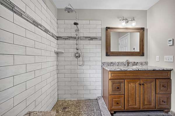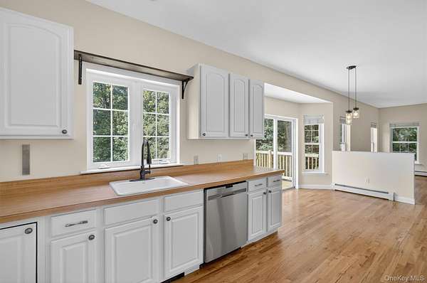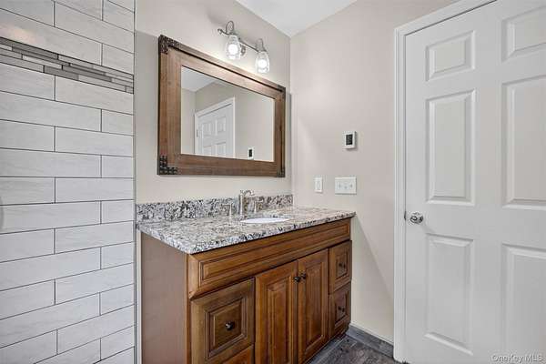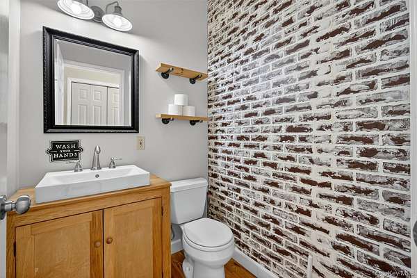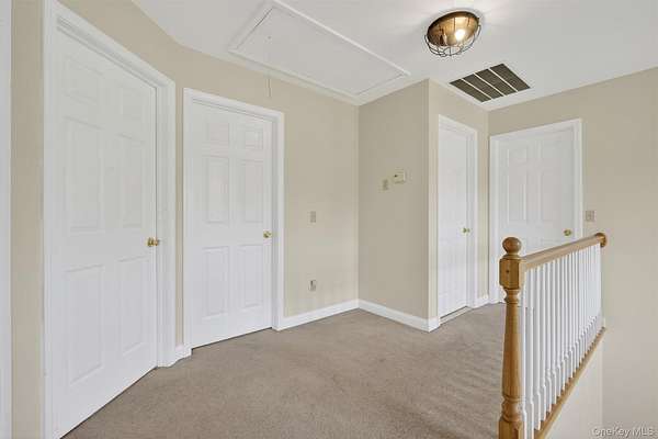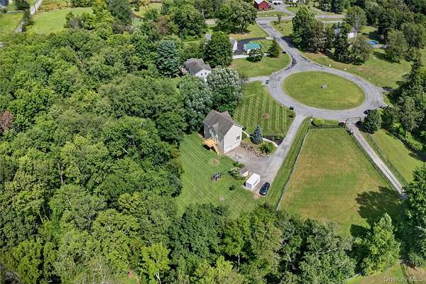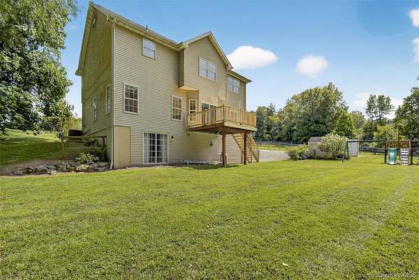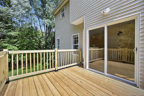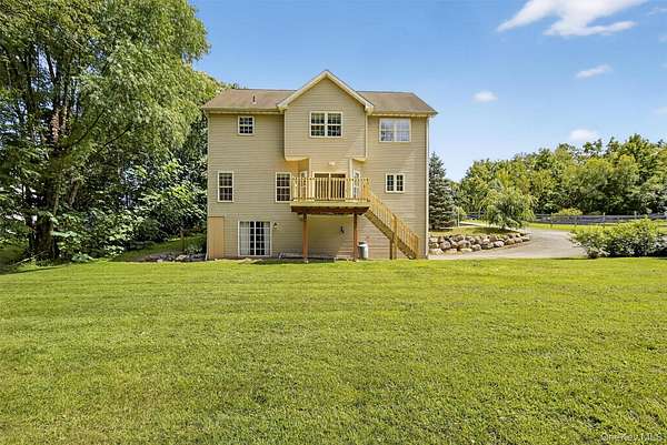 Tucked away at the end of a quiet cul-de-sac, this property offers a peaceful retreat with a backdrop of over 6 acres of mature woodlands. This classic colonial blends timeless design with modern updates and an inviting open floor plan--perfect for both everyday living and entertaining. The main level features 9-foot ceilings and all hardwood flooring. The spacious eat-in kitchen is equipped with stainless steel appliances. Sliding glass door (SGD) leads to a newly built deck overlooking the private backyard and opens directly to the living room. A convenient pantry provides extra storage, while the main level is rounded out by a formal dining room and a comfortable sitting room/office. A first-floor washer and dryer adds to the home's functionality. Upstairs, the main bedroom suite impresses with dramatic Palladian windows, two walk-in closet, and a renovated bath featuring a walk-in rain shower, Jacuzzi tub and granite countertops. Three additional nicely sized bedrooms and a full bath complete the second floor. The finished basement offers additional living space, complete with an SGD that leads to the yard. Conveniently located on Route 52 just outside the charming hamlet of Pine Bush, this home is centrally situated within easy reach of Routes 17 and 17K, Stewart Airport, Middletown, Newburgh, I-84, and I-87.