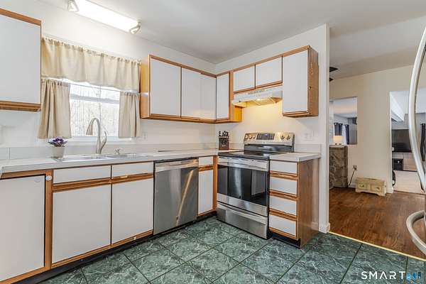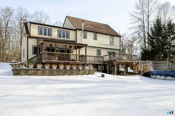 Welcome to this beautifully maintained Colonial at 22 Ebony Lane in Ivoryton, offering a thoughtful layout, quality updates, and comfortable living spaces ideal for today's lifestyle. A welcoming foyer with a sitting area sets the tone as you enter the home, leading into a warm and inviting interior enhanced by new Harvey windows, a new roof, and a whole-house generator for comfort and peace of mind. The heart of the home is the fantastic family room, featuring heated tile floors, recessed lighting, a mini-split system, and sliders that open to a covered deck, perfect for indoor-outdoor entertaining in any season. The adjacent pass-through kitchen is both functional and stylish, offering tile and wood flooring, a wood stove, updated sliders, and an easy flow to the family room, creating a cozy yet open gathering space. A formal dining room with hardwood floors provides the perfect setting for family meals and special occasions, while a convenient half bath completes the main level. Upstairs, the primary bedroom features two ceiling fans, a full bath, and walk in closet. A second full bath serves the additional 3 ample bedrooms. The spacious walkup attic provides plenty of storage with easy access through one of the rooms. Additional highlights include a finished lower-level walk out family room, office space with new carpet and fresh paint and a spacious laundry room. The furnace was converted to a high efficiency Viessmann System with on demand hot water as well.