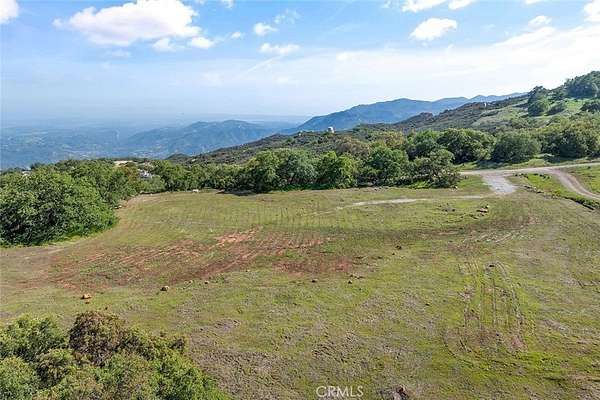 APN_ 932-070-033: Almost TEN ACRES in beautiful Tenaja on the Santa Rosa Plateau, with views of the OCEAN, VALLEY AND MOUNTAINS! This parcel provides a rare opportunity to live in a pristine, natural setting, with paved road, available public water, surrounded by Nature Conservancy, among ancient oak trees (many are rare Englemann Oaks), gorgeous rock outcroppings, and forever views. A public 1" Water Meter has been installed on the property, which greatly minimizes your cost to build. Private, quiet, serene, and located on the corner of the paved Corona Cala Camino and El Cerezo, this stunning parcel is ready for your dream estate, which may include main house, ADUs, barn, workshops, a private water well (water currently provided in the area by city water), etc. Imagine sitting on your future patio, gazing at the views and enjoying the deer that frequent the property. You will feel worlds away, yet you are within a 15-minute drive to all the amenities of town. This is an ideal setting for a DREAM ESTATE! Build your dream YOUR way! *SANTA ROSA PLATEAU: 5-acre minimum parcels (10-acre minimum. in SR West), just minutes to schools, restaurants, hospitals, grocery stores, 15 Fwy & Temecula Wine Country. Enjoy this peaceful ranch community w/no commercial businesses, robust social activities, miles of private community trails & 1000s of acres of Ecological Reserve...All less than 1.5 hours from LA, SD, OC, Palm Springs & Big Bear. Discover the country, yet convenient, lifestyle of La Cresta, Tenaja & the Communities of the Santa Rosa Plateau!